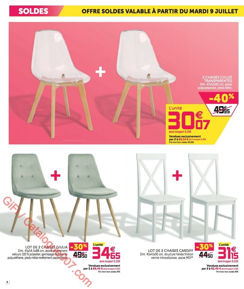 - Chaises Giulia, chaises Cardiff, chaises Chloé transparente