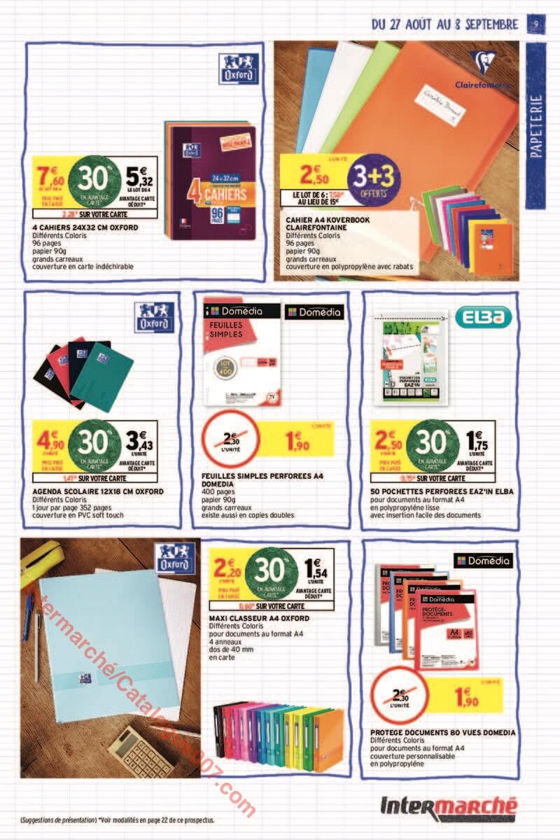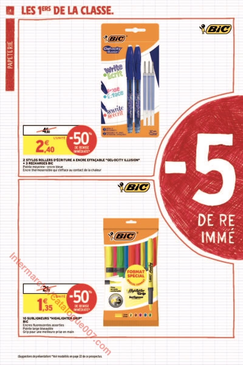- Intermarché promotions pour la rentrée 2019 : 50% de remise sur les lots de stylos rollers à encre effaçable BIC, de 10 surligneurs BIC, agendas scolaires Clairefontaine et bloc-notes Oxford