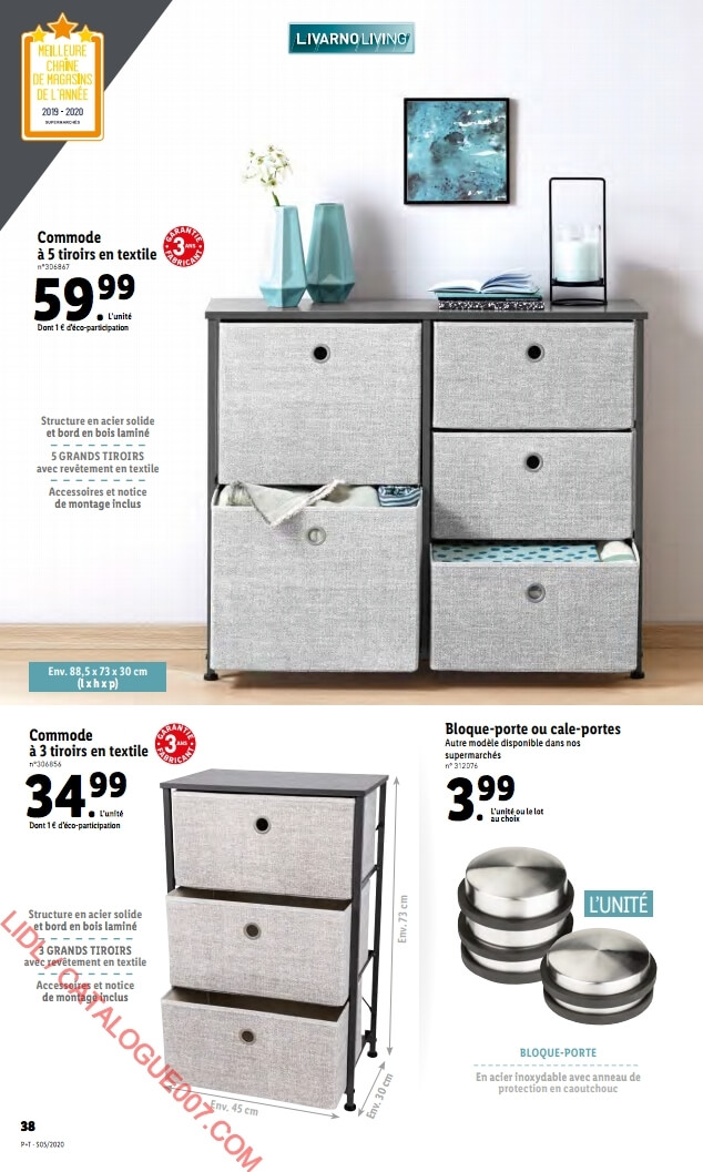La commode à 5 tiroirs en textile LIVARNOLIVING est 59,99€ à partir du lundi 3 février 2020 dans votre magasin Lidl !