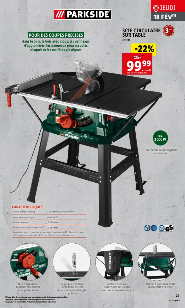 • Scie circulaire sur table parkside lidl