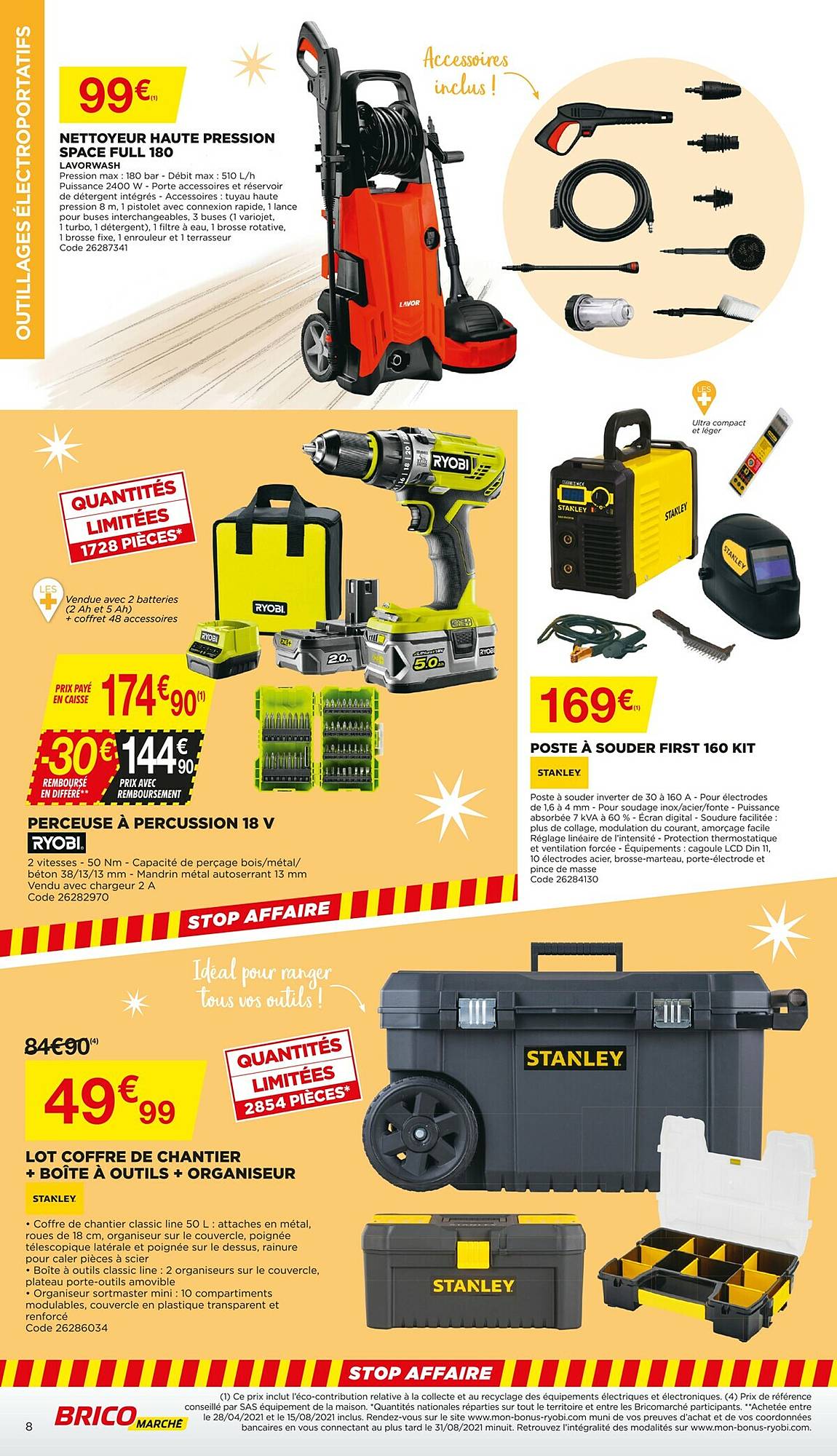 Arrivage Bricomarché catalogue valable jusqu’au 19 juin 2021 avec du bricolage : bétonnière, perceuse à percussion 18V, lot coffre de chantier + boîte à outils + organisateur, nettoyeur haute-pression, du jardinage : récupérateur d’eau, arrosoir, taille-haie filaire, débroussailleuse thermique et du mobilier de jardin : salon lounge, piscine, barbecue, …