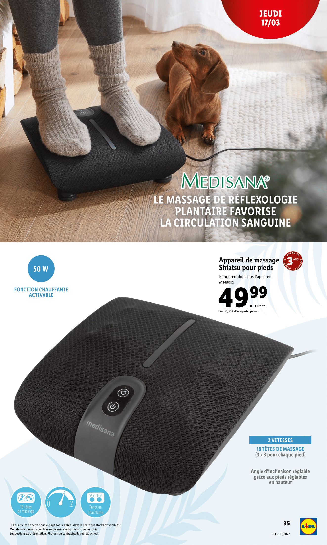 Quoi de neuf chez Lidl ce jeudi 17 mars 2022 ? – Ceinture de musculation abdominale Medisana Lidl – Cale-nuque ou coussin demi-cylindrique – Compresse chaude/froide – Bouillotte – Appareil de massage Shiatsu pour pieds Medisana – Thermomètre multifonction Silvercrest Lidl – Pèse-personne impédancemètre Silvercrest Lidl – Serviette de bain en éponge – Tapis de salle de bains – Rideau de douche – Serviettes en éponge