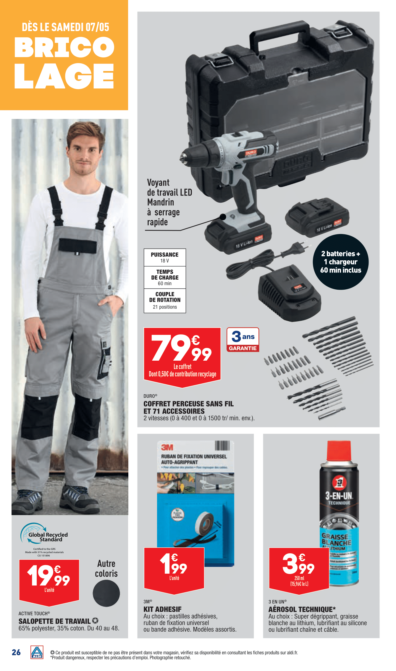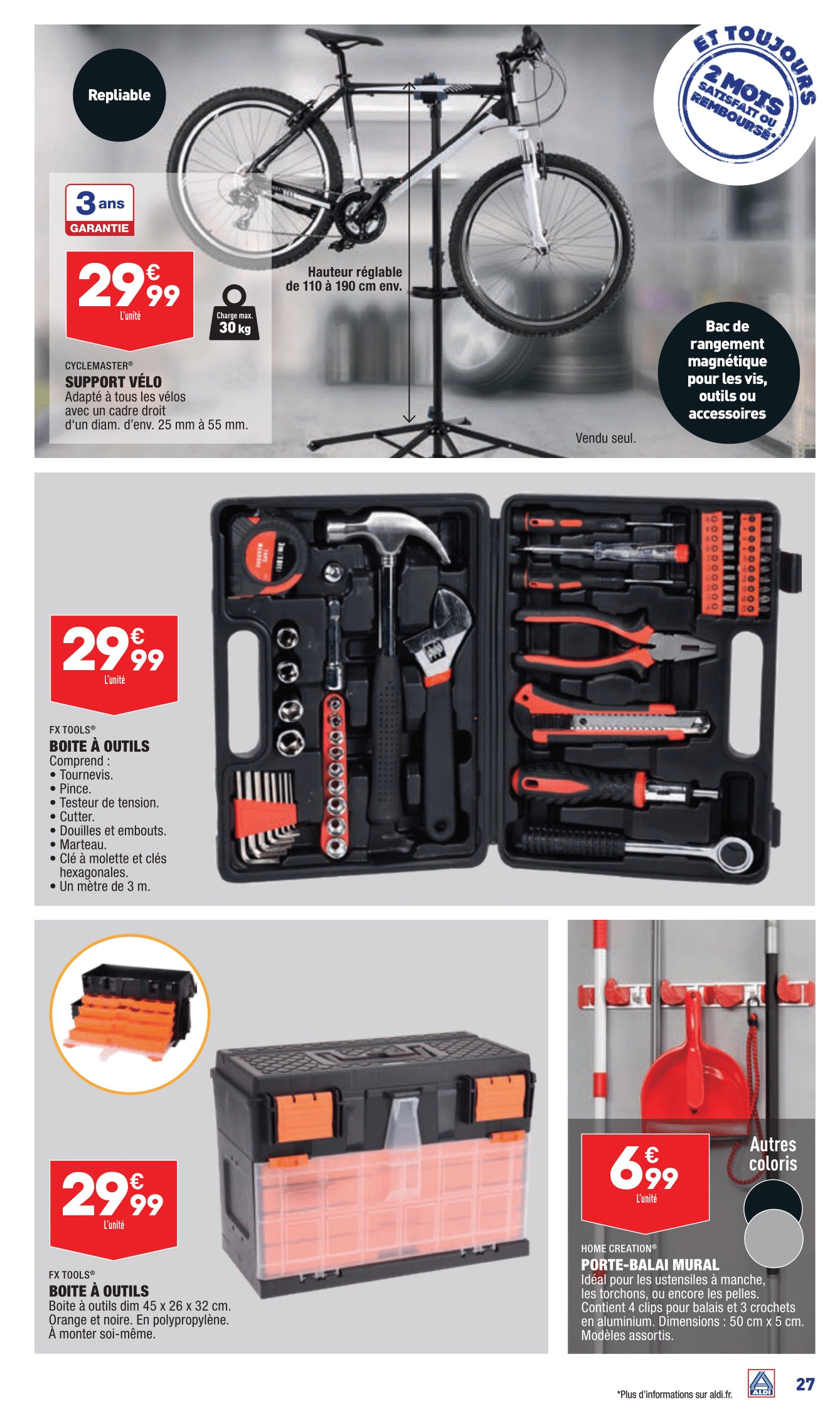 – COTÉ BRICOLAGE : MEULEUSE D’ANGLE À BATTERIE, DISQUES POUR MEULEUSE, ACCESSOIRES POUR OUTIL MULTI USAGES, LOT DE VIS INOX EN SEAU, COFFRET PERCEUSE SANS FIL ET 71 ACCESSOIRES, SALOPETTE DE TRAVAIL, KIT ADHESIF, AÉROSOL TECHNIQUE, SUPPORT VÉLO, BOITE À OUTILS, BOITE À OUTILS, PORTE-BALAI MURAL