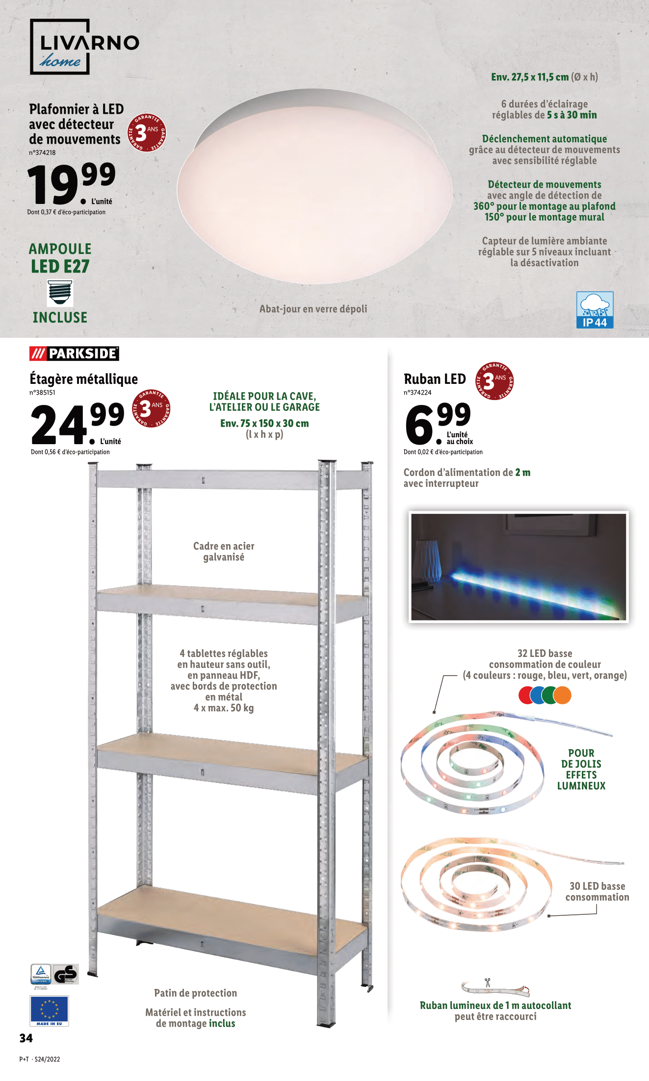 Quoi de neuf chez Lidl ce jeudi 16 juin 2022 ? – Scie sauteuse pendulaire Parkside – Scie sabre Parkside – Ponceuse multisupports Parkside – Pince, clé ou tenaille – Set de rangement – Lubrifiant ou huile Parkside – Perceuse-meuleuse de précision sans fil Parkside – Accessoires pour perceuse-meuleuse de précision – Patins de protection – Vis pour aggloméré – Forets, forets HSS ou mèches à bois – Projecteur extérieur à LED – Sonnette SANS FIL ET SANS PILE SilverCrest – Pieds de biche ou leviers d’effort – Plafonnier à LED avec détecteur de mouvements – Étagère métallique Parkside – Ruban LED