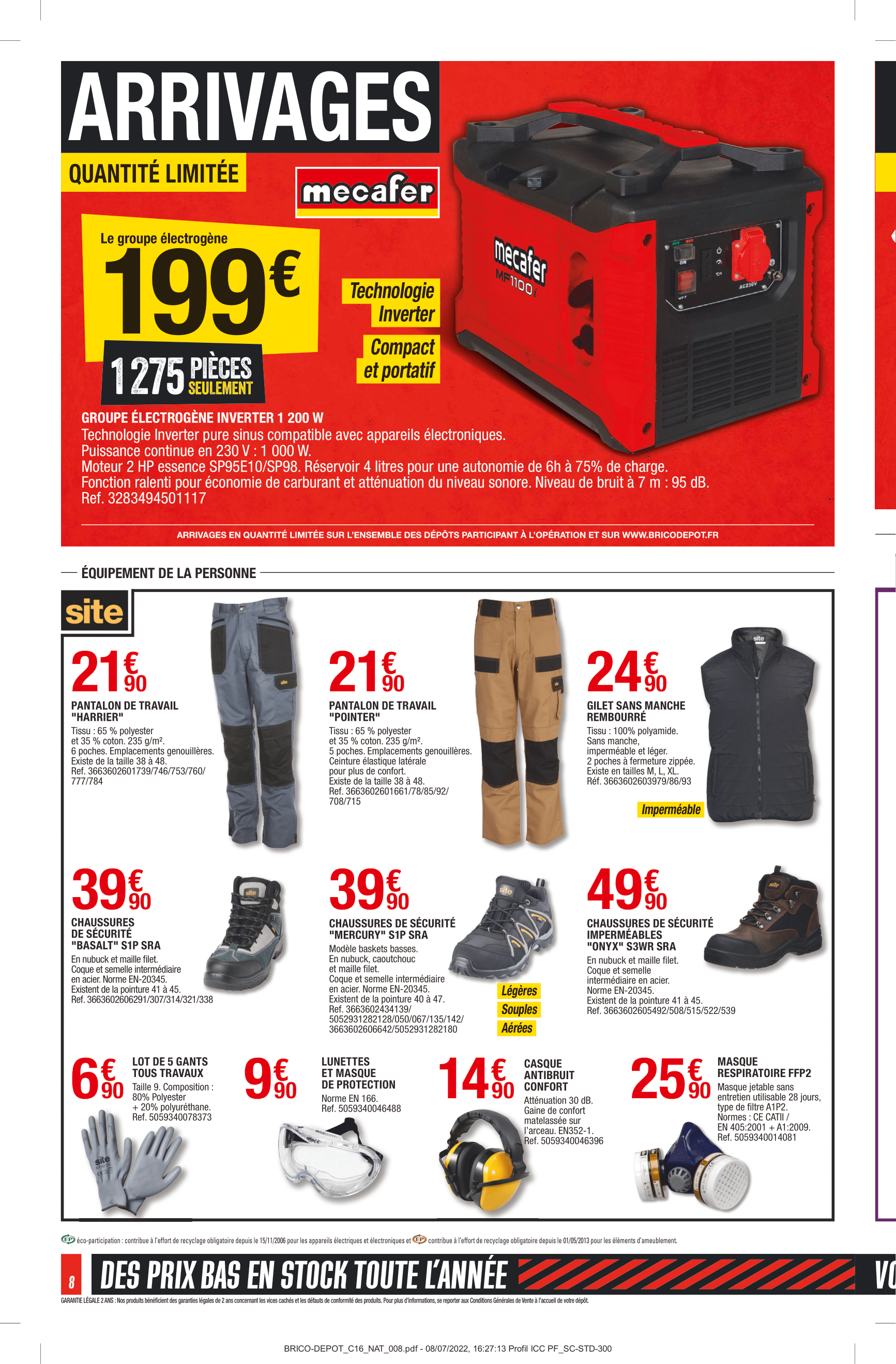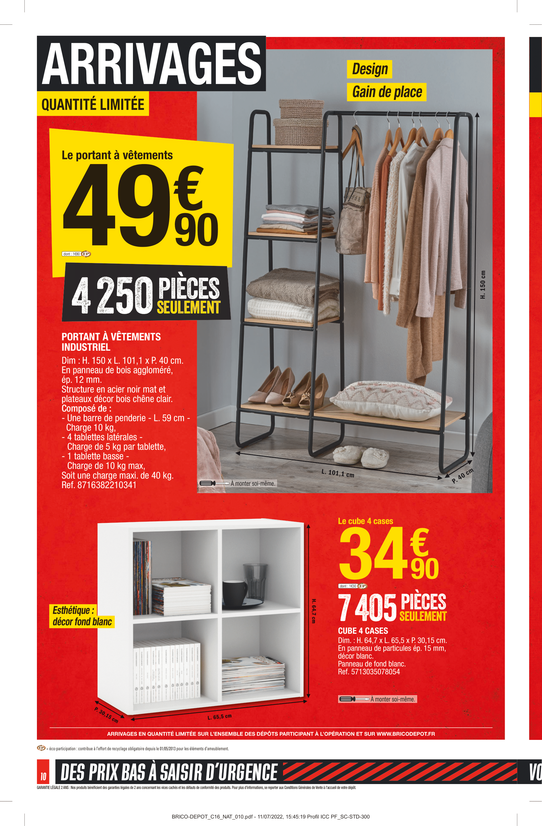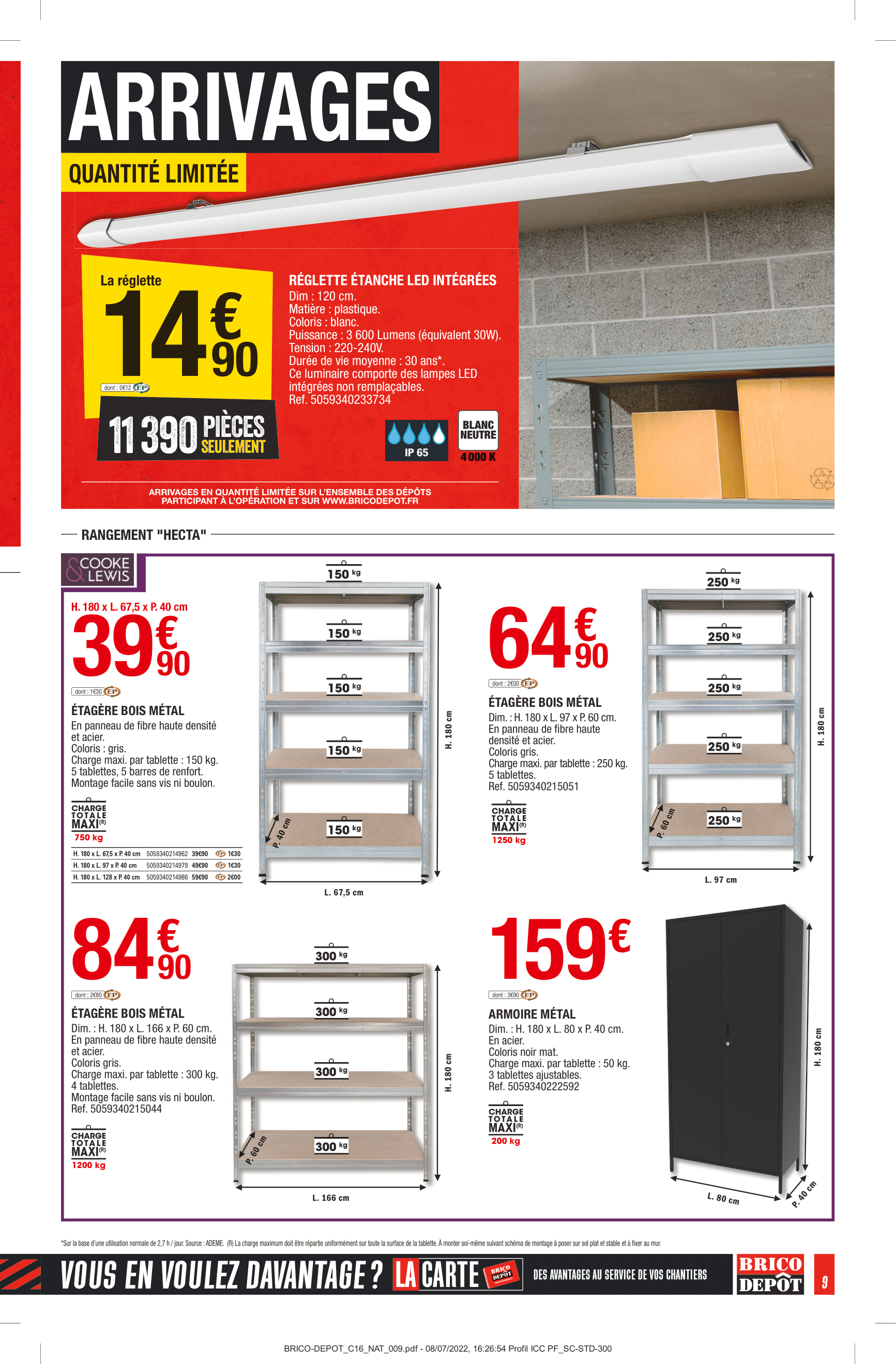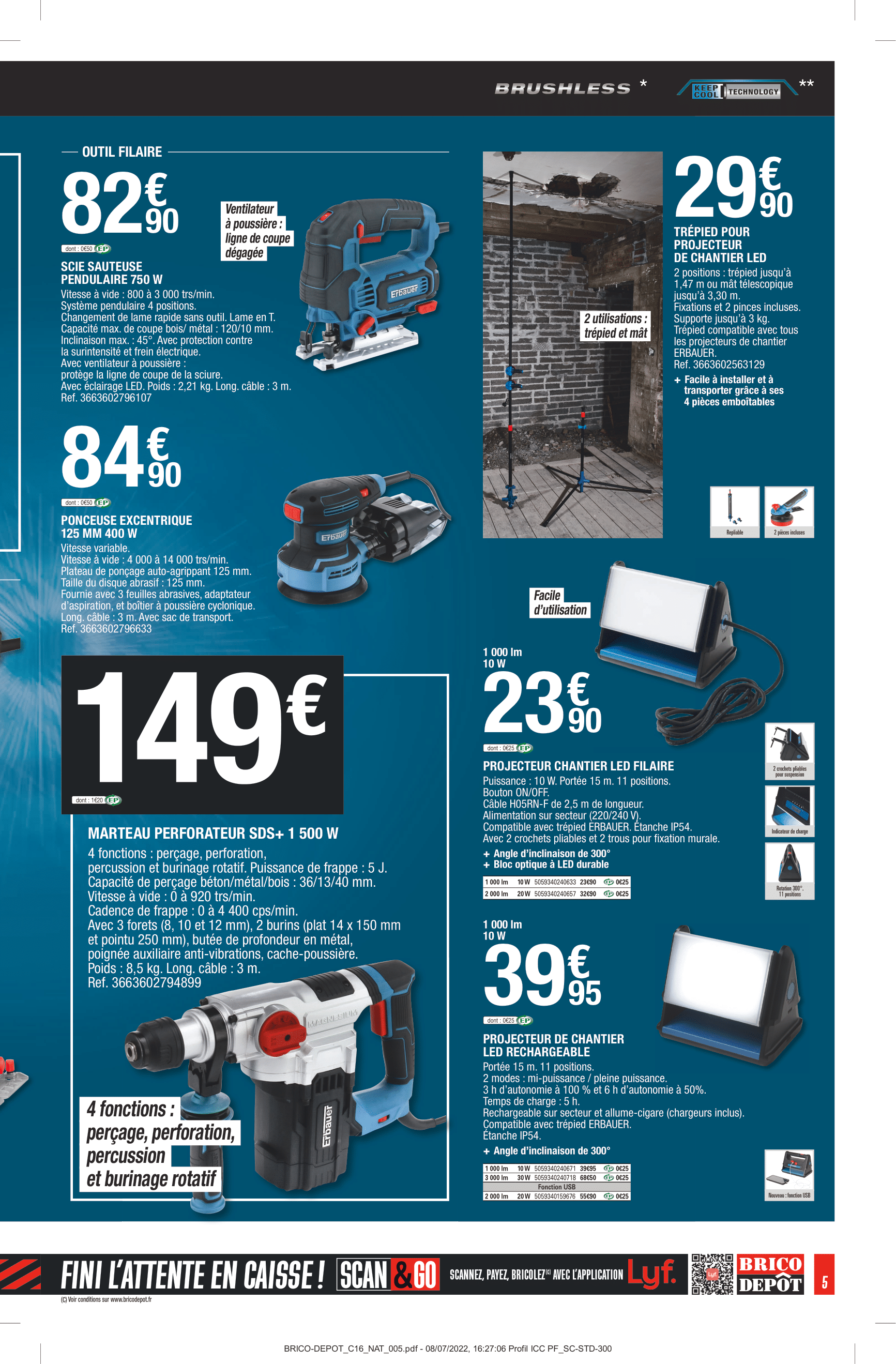Produits disponibles chez Brico Dépôt : – REMORQUE SIMPLE ESSIEU AVEC REHAUSSES ET BÂCHE – DÉBROUSSAILLEUSE 3 EN 1 – 52 CM3 – PERFORATEUR SDS+ 1 500 W + ACCESSOIRES – TOURNEVIS SANS FIL – SCIE SAUTEUSE – PERCEUSE À PERCUSSION – SCIE CIRCULAIRE – SCIE SAUTEUSE – MARTEAU PERFORATEUR SDS+ 1 500 W – COFFRET À DOUILLES