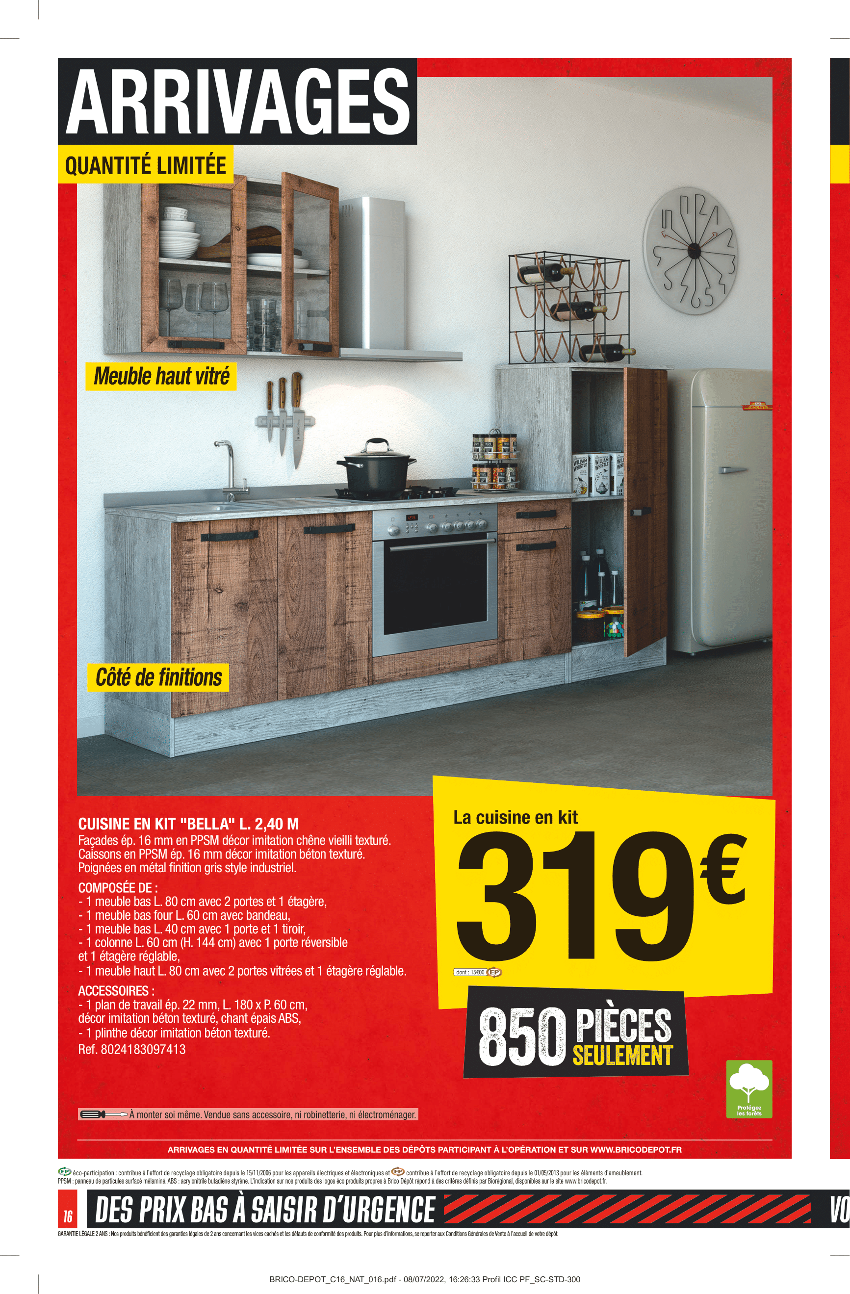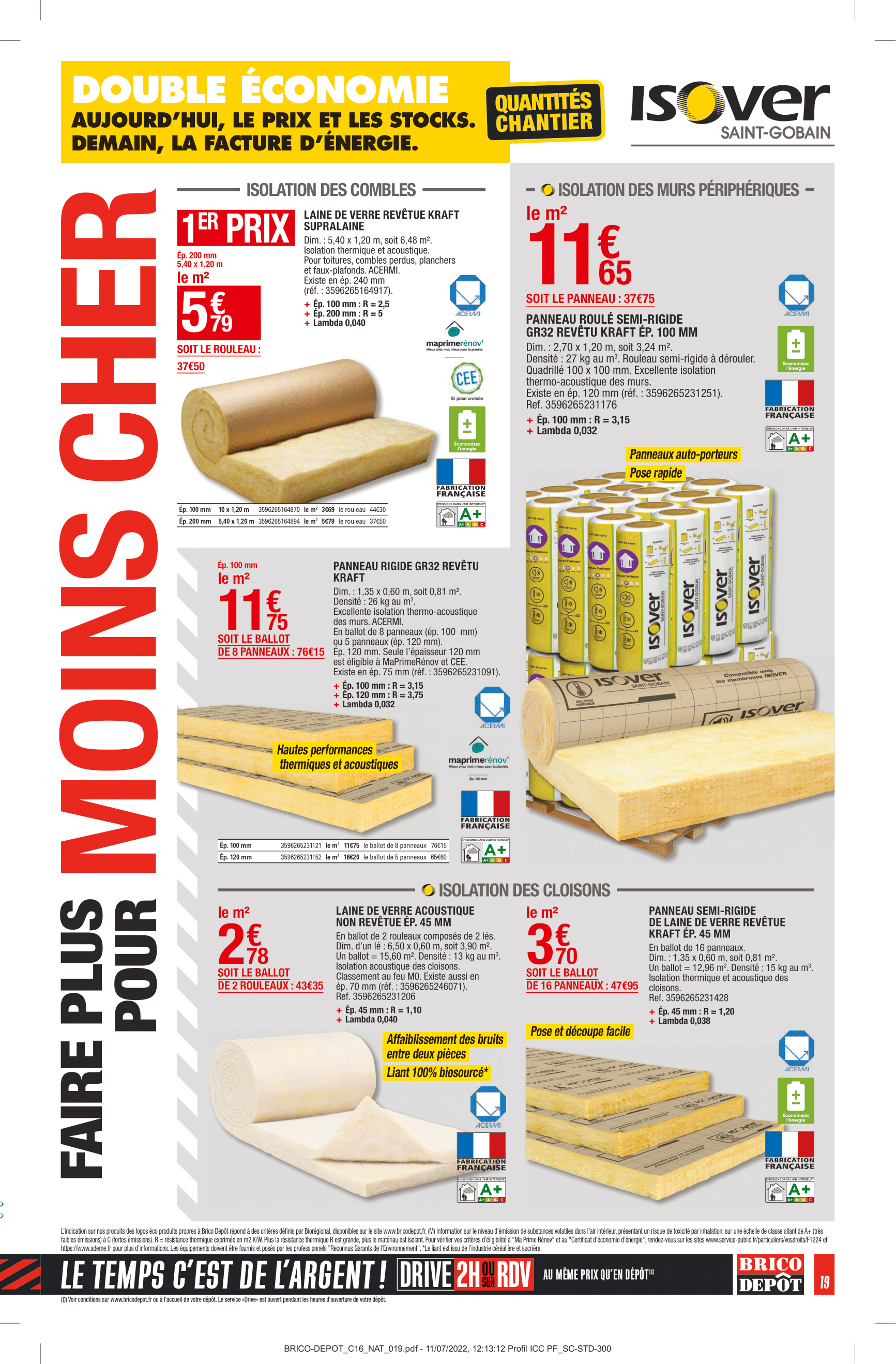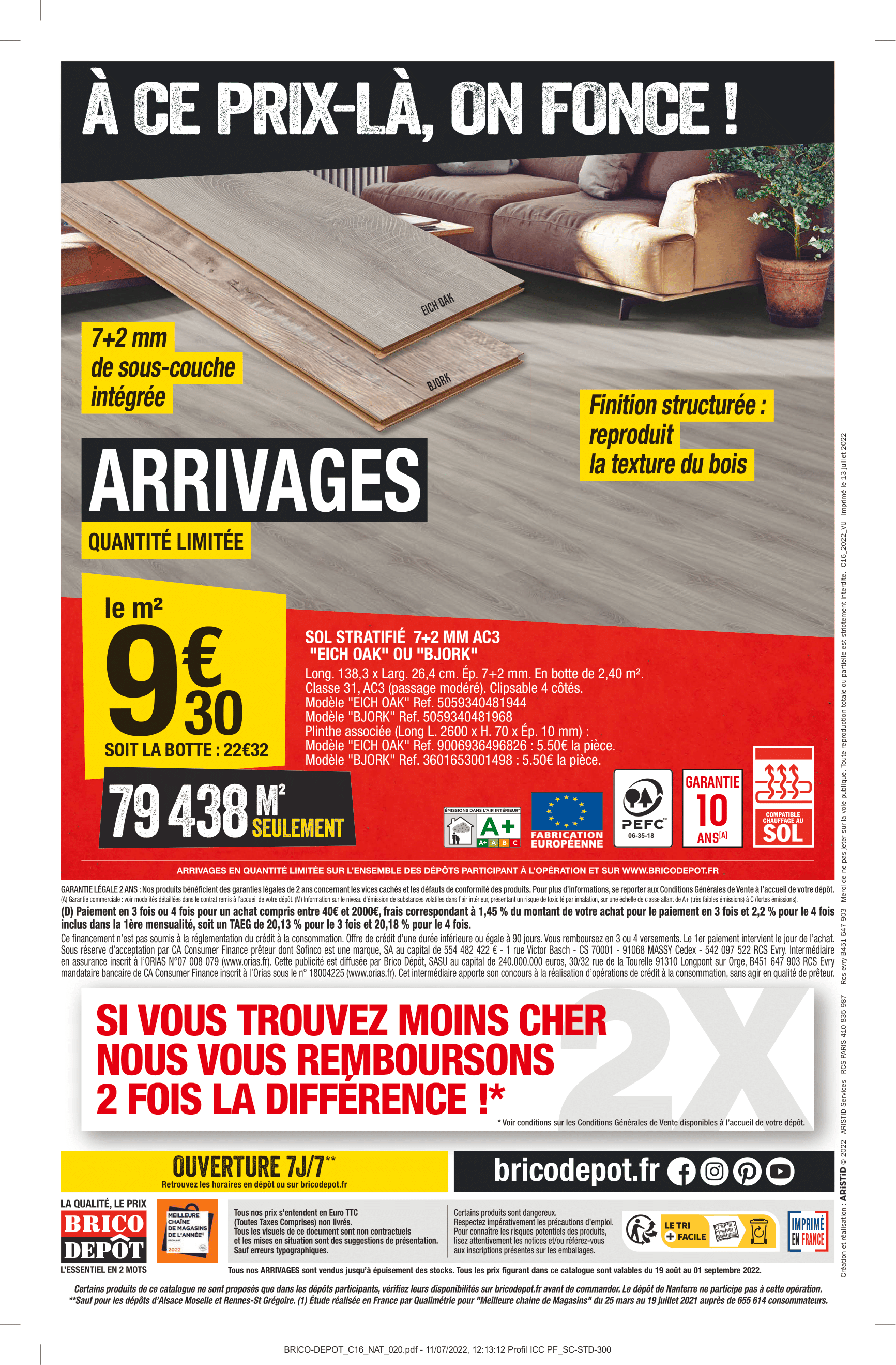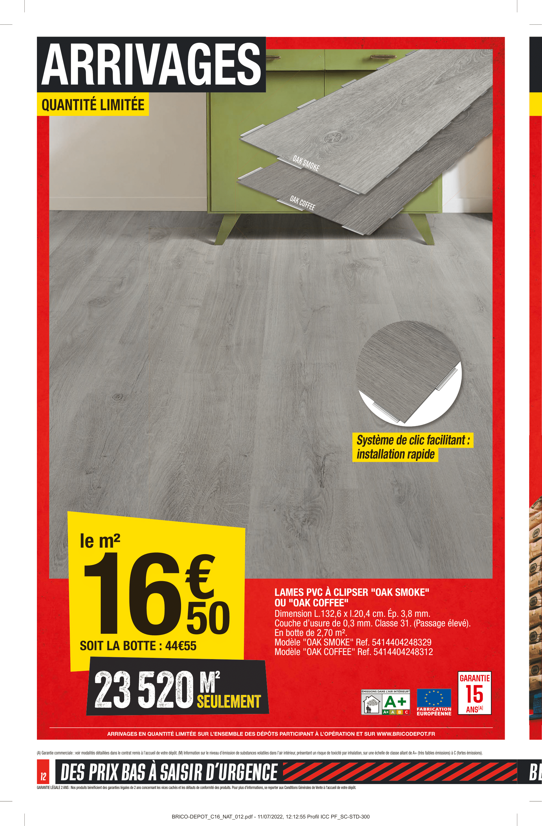 Produits disponibles chez Brico Dépôt : – REMORQUE SIMPLE ESSIEU AVEC REHAUSSES ET BÂCHE – DÉBROUSSAILLEUSE 3 EN 1 – 52 CM3 – PERFORATEUR SDS+ 1 500 W + ACCESSOIRES – TOURNEVIS SANS FIL – SCIE SAUTEUSE – PERCEUSE À PERCUSSION – SCIE CIRCULAIRE – SCIE SAUTEUSE – MARTEAU PERFORATEUR SDS+ 1 500 W – COFFRET À DOUILLES