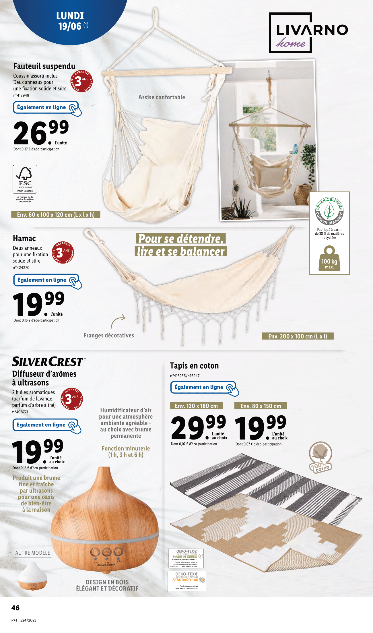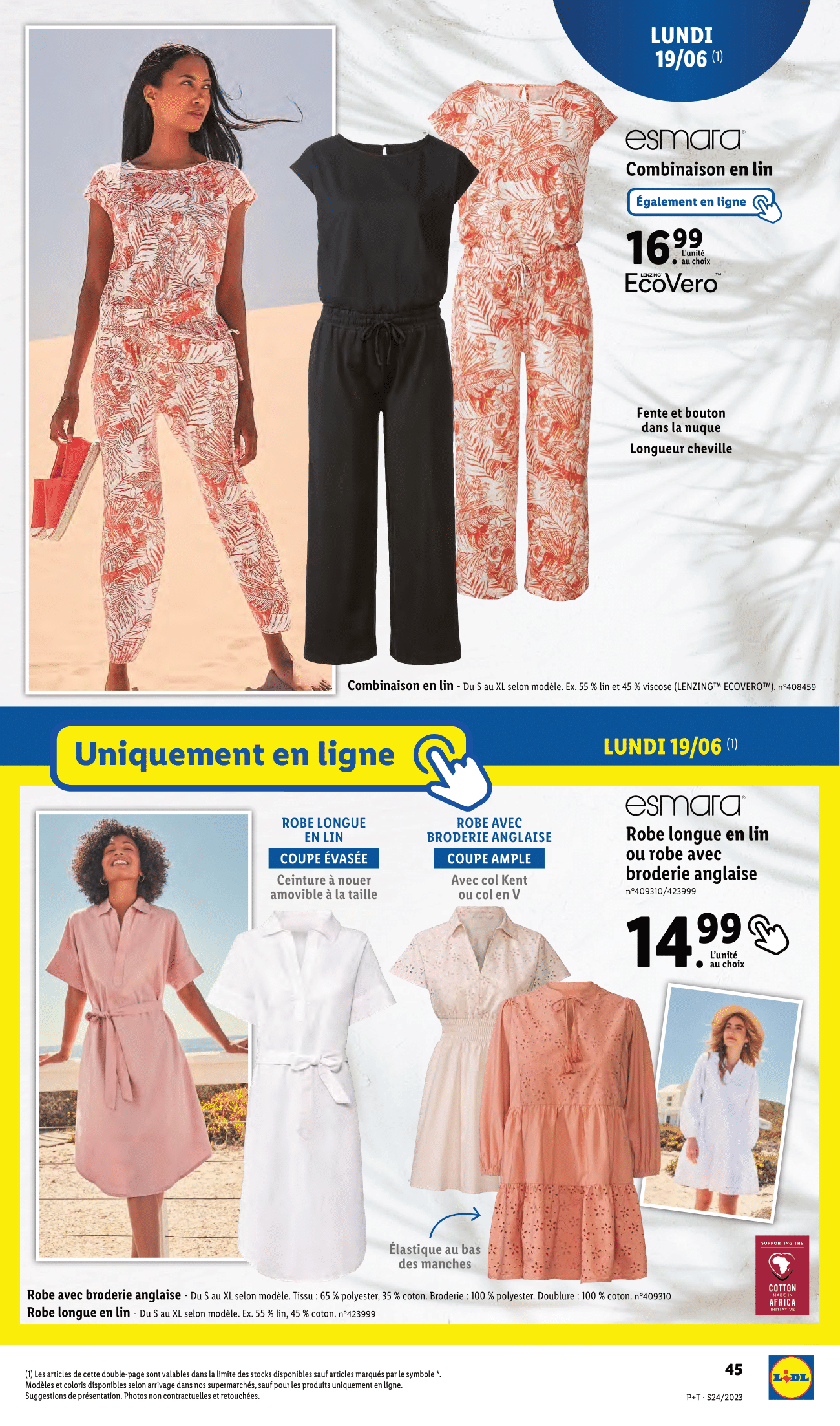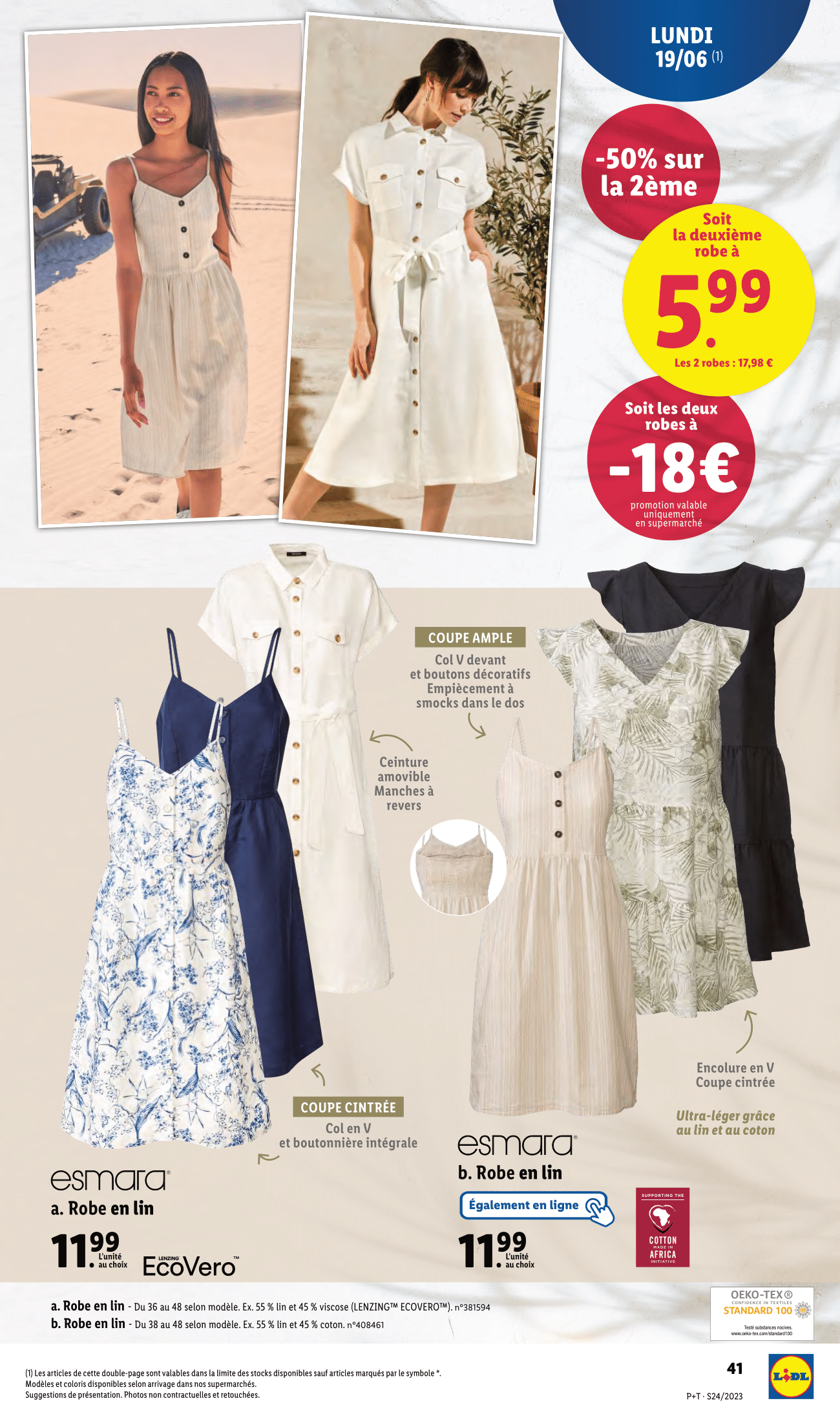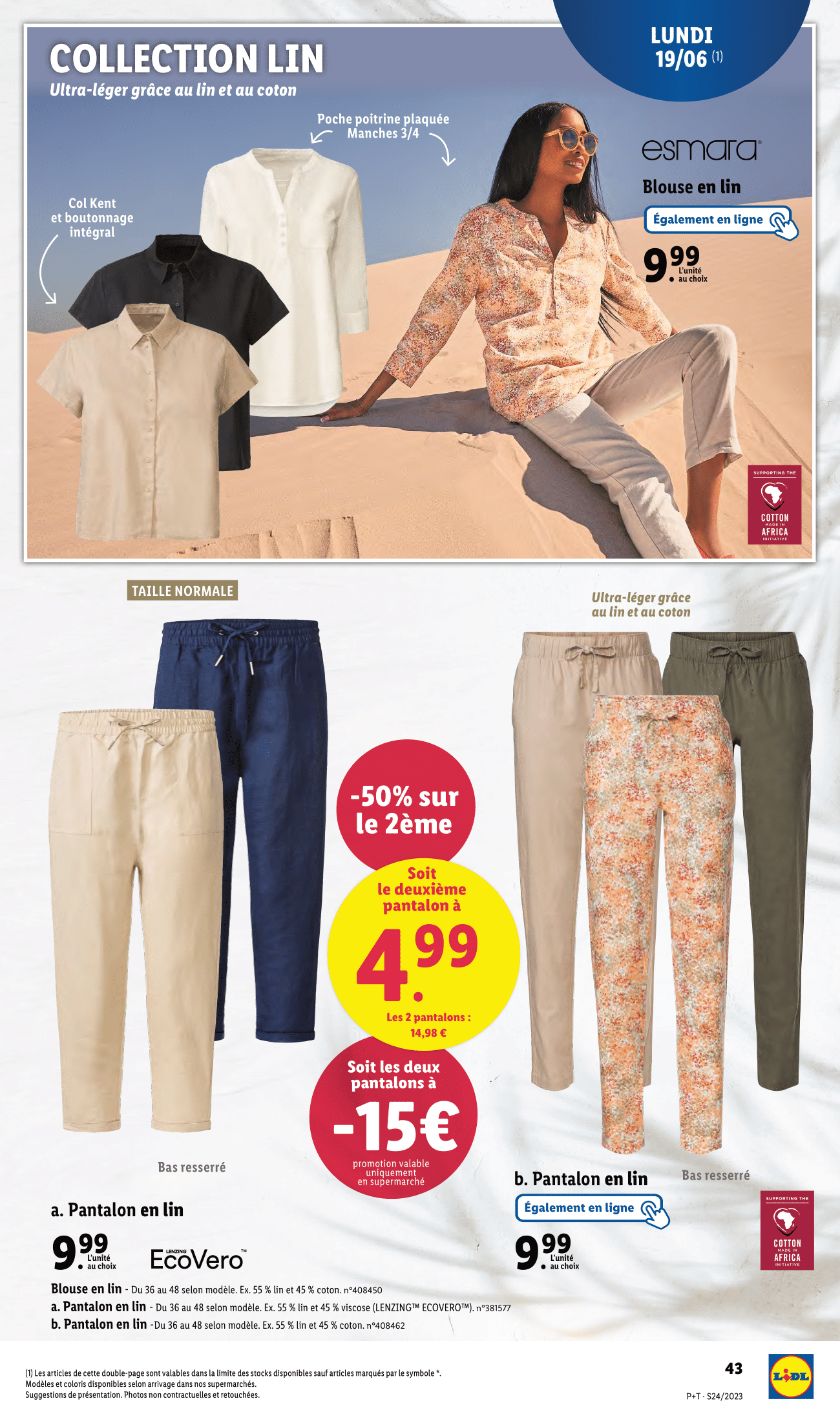 Salut la compagnie, Après avoir découvert les arrivages de la boutique en ligne Lidl, (je vous remets le lien dans la description si vous êtes intéressés), on s’attaque maintenant aux arrivages en magasin de la semaine du mercredi 14 au mardi 20 juin 2023. On commence donc le mercredi 14 juin avec la sélection de plantes et fleurs Lidl : Kalanchoé en pot couleur ou dipladénia ton sur ton avec -25% sur la deuxième plante achetée, Aloé en corbeille, Bégonia, gerbera ou lavande, également avec -25% sur la deuxième achetée, Spathiphyllum en pot céramique, anthurium en vase et alstroeméria. Enfin bougainviller sur espalier ou coupe d’œillet parfumé, avec -20% sur la deuxième plante achetée. Et cette sélection continuera dès le lundi 19 juin avec les calla en pot céramique, lys oriental et hibiscus. On passe aux arrivages du jeudi 15 juin avec le ventilateur de table, avec l’été qui approche à grand pas, il sera idéal pour cuisiner sans avoir trop chaud. Et justement en parlant de cuisiner les couteaux Kushino et les planches à découper seront également disponibles en rayon. On continue avec la tireuse à bière qui sera à -20 euros et qui passe donc de 99 à 79 euros. Et pour garder vos restes de repas bien conservés, nous avons des boîtes en acier inoxydable. Elles garderont vos aliments frais plus longtemps. Et n’oublions pas le distributeur de boissons, parfait pour organiser une petite fête à la maison ! Ah, nous voilà le paradis des amateurs de barbecue ! Vous voulez cuisiner une délicieuse pizza en plein air ? Nous avons le four à pizza pour barbecue, qui vous permettra de savourer une pizza croustillante comme en Italie. N’oubliez pas d’ajouter la pierre à pizza pour une cuisson parfaite. Et bien sûr, les brochettes, les pinces et tous les accessoires dont vous avez besoin pour devenir le maître du barbecue. Mais pour un vrai barbecue et il nous faut un barbecue, et le voilà justement, le barbecue à colonne au charbon de bois. Et pour nettoyer tout ça, ne manquez pas la brosse de barbecue et les ustensiles spécialement conçus pour vos grillades. Alors je n’ai bien suivi les modes vestimentaires de ces dernières années, mais si vous voulez vous habiller aux couleurs de Lidl, c’est possible du t-shirt au sneakers en passant par les shorts, bob ou casquette. Vous allez avoir un look total Lidl. Et puis pour qu’on ne vous loupe pas sur la plage, vous avez aussi la serviette de plage en éponge Lidl. Au moins vous êtes sûr de retrouver facilement votre serviette au retour de votre baignade. Par ailleurs surtout de ne pas vous la faire voler, enfin, on ne sait jamais ! Il y a des fans de Lidl partout ! Pour un style plus sobre, Lidl proposera également sa collection lin, d’abord rayon homme avec les t-shirts, chemises, pantalon, bermuda, socquette et autres chaussures ! On est de retour derrière les fournots le lundi 19 juin avec la râpe multifonction, boîtes repas en verre, corbeille à fruits et plateau antidérapant. Pour des glaçons prêts en quelques minutes, lidl ressort sa fabrique à glaçons. Parfait pour cet été ! Mais la vraie nouveauté de cette semaine, c’est le retour de la collection d’électroménager cuisine aspect bois. Personnellement je la trouve sobre et originale à la fois. Donnez-moi votre avis en commentaire ! On retrouvera donc le four à micro-ondes et les ustensiles de cuisine. Ce n’est pas terminé puisqu’à cela s’ajoute le pichet isotherme, moulin à sel/poivre électrique, bouteille isotherme et plateau ou planche à découper. Toujours dans la famille bois, je voudrais le grille-pain double et la balance de cuisine numérique. Lesquels seront également disponible à la vente en ligne. Enfin, on termine cette sélection avec les poêles en fonte d’aluminium et faitout ou casserole en fonte d’aluminium. Et toujours ce lundi 19 juin, on retrouvera la collection lin, mais rayon femme cette fois-ci avec des t-shirts, robe, bardeurs ou short. Mais ce n’est pas tout puisqu’il y aura aussi des combinaisons, blouses et pantalons. Enfin, on termine cette collection lin avec d’autres combinaisons Et à défaut de partir à Copacabanna cet été, vous pouvez toujours en porter les tongues. Pour vous détendre chez vous ou en extérieur, Lidl remet en rayon son fauteuil suspendu et son hamac. Et pour une ambiance zen, vous avez le diffuseur d’arômes à ultrasons Enfin, les tapis en coton viennent conclure cette page. On termine finalement ce catalogue par le super-weekend Lidl à retrouver du vendredi 16 au dimanche 18 juin. Et bien voilà on a fait le tour de ce catalogue Lidl de la semaine du mercredi 14 au mardi 20 juin 2023. N’hésitez pas à me donner vos avis en commentaire, j’attends vos retours !