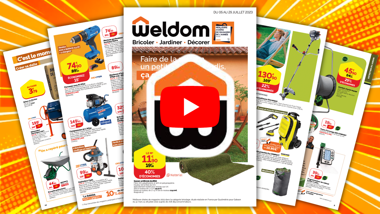 Salut la compagnie, Bricoler, jardiner et décorer, c’est ce que nous propose l’enseigne Weldom dans son nouveau catalogue disponible jusqu’au 29 juillet 2023. On commence donc avec ce gazon artificiel qui sera en promo et qui va vous faire économiser le prix des engrais et désherbant, mais également les factures d’eau exorbitante. C’est le moment de clôturer son extérieur avec les grillages, canisse roseau ou lame composite à emboiter. Sinon, des luminaires d’extérieur seront aussi disponibles en magasin. Il y a une promotion sur les panneaux droit occultant. En vrac, Weldom nous propose aussi sa boite lettre garantie anti-corrosion 15 ans, du scellement chimique ainsi que le projecteur solaire à détecteur de mouvements. On retrouve également tout ce qu’il faut pour se faire un bon barbecue, après tout c’est la saison ! Vous allez également pouvoir vous rafraichir avec les piscine et spa gonflable, prendre des bains de soleil tout en faisant attention aux insolations grâce au parasol et voile d’ombrage. Sinon, pour ranger votre matos de jardinage et autres, le coffre de jardin résine elite est aussi disponible en rayon. Coté outillage pour le jardin, il y a du beau monde avec le coupe-bordures électrique, la débroussailleuse thermique, la tondeuse à batterie, le nettoyeur haute pression karcher, le sécateur a une main inox et le sac de jardin. On continue l’entretien du jardin avec le dévidoir chariot équipé, la pompe d’arrosage et d’alimentation manuelle, tuyau d’arrosage, kit d’aspiration et programmateur de robinet à piles 2 voies. Il y a aussi tout ce qu’il vous faut pour embellir votre terrasse ou jardin avec les lames de terrasse, pas japonais ou gravier, par exemple. Pour l’entretien du bois, on retrouve justement des protections (lasure et traitement), mais également la ponceuse excentrique, le lot de 3 pinceaux bois ainsi que le kit pour vernir, lasurer, huiler. Allez, c’est le moment de commencer les gros travaux avec le béton ou mortier, la bétonnière électrique 125 l, brouette polyvalente ou encore échelle aluminium transformable à 3 plans. Il y a aussi de quoi monter ses cloisons. Et Weldom nous propose également son interrupteur va-et-vient ou prise avec terre étanche et tréteau pin professionnel. On passe aux tendances décorations du moment. Exotique d’abord, pas besoin d’aller loin pour s’évader, la déco peut inviter au voyage avec le papier peint jungle, bois chauds, peinture effet nuage et bien d’autres décos à découvrir en magasins. Et si vous êtes plutôt minimaliste, style noir et blanc il y a aussi de quoi vous intéresser. Le noir, c’est élégant. Le blanc, c’est apaisant. Les 2 réunis ont un chic inouï. Suspensions, voilages, Papier peint à découvrir en magasin ! C’est l’heure de faire un grand rangement avec entre autre l’étagère établi, les cantines ou l’armoire plastique 3 étagères Si vos vêtements débordent de tous les côtés, alors ce kit dressing peut certainement vous intéresser. Un déménagement de prévu, pas de panique, vous trouverez votre bonheur en magasin. Coté outillage, on retrouve la perceuse sans fil, le marteau perforateur burineur filaire, meuleuse d’angle filaire + disque diamant, compresseur 50 l, scie circulaire de table, aspirateur, valise trolley 141 outils et enrouleur. On file dans la salle de bain maintenant avec les parois, receveurs et colonnes de douche, sèche-serviettes, mais également pack WC. Ce n’est pas terminé puisqu’à cela s’ajoute les meubles de salle de bain et mitigeur d’évier. Enfin, on termine ce catalogue avec le salon et chaise de jardin Alma et ventilateur brasseur d’air Jervis. Voilà, on a fait le tour de ces arrivages Weldom disponible jusqu’au samedi 29 juillet 2023. N’hésitez pas à me donner vos avis en commentaire, j’attends vos retours !