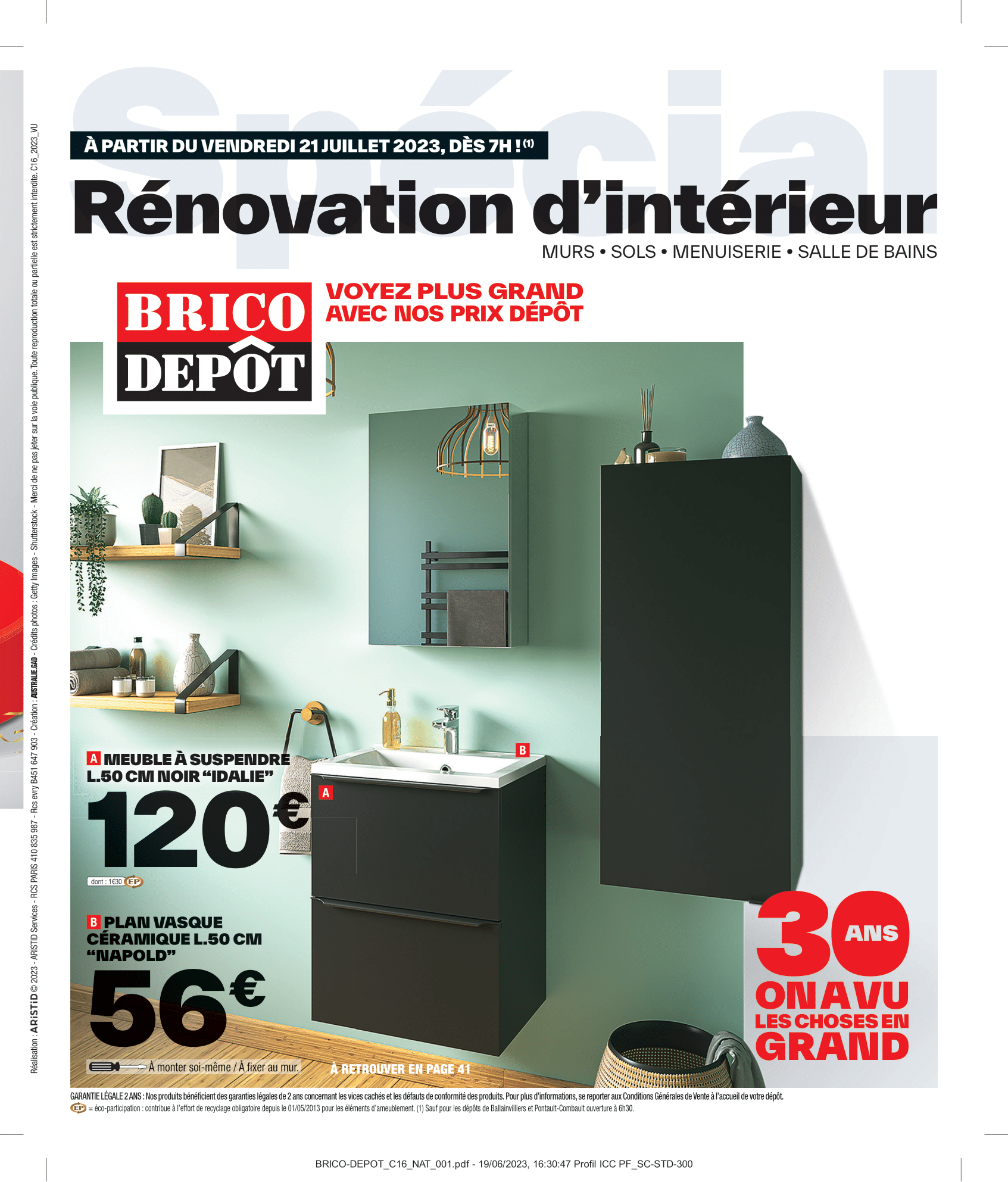 Salut la compagnie, C’est parti pour découvrir le nouveau catalogue Brico Dépôt avec des arrivages à retrouver du vendredi 21 juillet au jeudi 10 août 2023. Aménagement intérieur, extérieur, outillage et sol, on va tout regarder ensemble dans cette vidéo. On commence donc par les aménagements d’extérieurs avec les lames composites grise rainurée, mais également le lot de 6 lames de clôture composite gris accompagné du kit poteau alu gris. Pour ranger outils de jardinage, jeux d’extérieur et tout le tintouin, Brico Dépôt nous ressort son abri en bois. Coté sol, il y aura des planches en pin et dalle en bois brun. Rayon outillage et construction, on retrouvera en magasin la remorque double essieu + bâche plate. Idéale pour le transport de matériaux encombrants tels que les plaques De plâtre, sable, gravats, parpaings…, Sinon il y aura aussi l’échafaudage pro 6,70 m ainsi que la porte de garage sectionnelle motorisée. Pour entreposer votre matos le plus lourd, vous pourrez compter sur l’étagère pro charge lourde bois/métal pouvant supporter jusqu’à 300kg sur chaque tablette. Multiples renforts. À clipser : montage facile. Épaisseur tablette de 15 mm pour plus de solidité. Bac acier et panneau polyuréthane pour les murs seront également de la partie. Préparez-vous à être scié, Brico Dépôt nous propose les scies sur table ou scie à onglet, en différents modèles à la fois Titan et Erbeauer. Coté compresseur et groupe électrogène, on retrouvera également une jolie sélection. Rayon électricité, il y aura les couronnes de câble, tableau prééquipé et précâblé 4 rangées ainsi que la mallette 130 bornes mixtes. On passe aux aménagements intérieur maintenant avec le sèche-serviettes barres plates “Melor” 500 w avec soufflerie intégrée 1 000 w Il y aura aussi les portes coulissante atelier vitrage opale ou verrière noire 4 panneaux vitrage opale. Idéal pour obtenir occultation et luminosité. Attention où vous mettez les pieds, voici le carrelage de sol intérieur. On file derrière les fourneaux maintenant avec le plan de travail stratifié, le lot de 2 tabourets de bar avec pieds réglables en hauteur, lave-vaisselle compact avec départ différé : 1-24 h et micro-ondes encastrable 25 l noir avec cavité intérieure plate pour un nettoyage facile. On termine finalement ce catalogue par le pack WC suspendu. Eh bien voilà, on a fait le tour de ces arrivages Brico Dépôt du vendredi 21 juillet au jeudi 10 août 2023. N’hésitez pas à me donner vos avis en commentaire, j’attends vos retours !