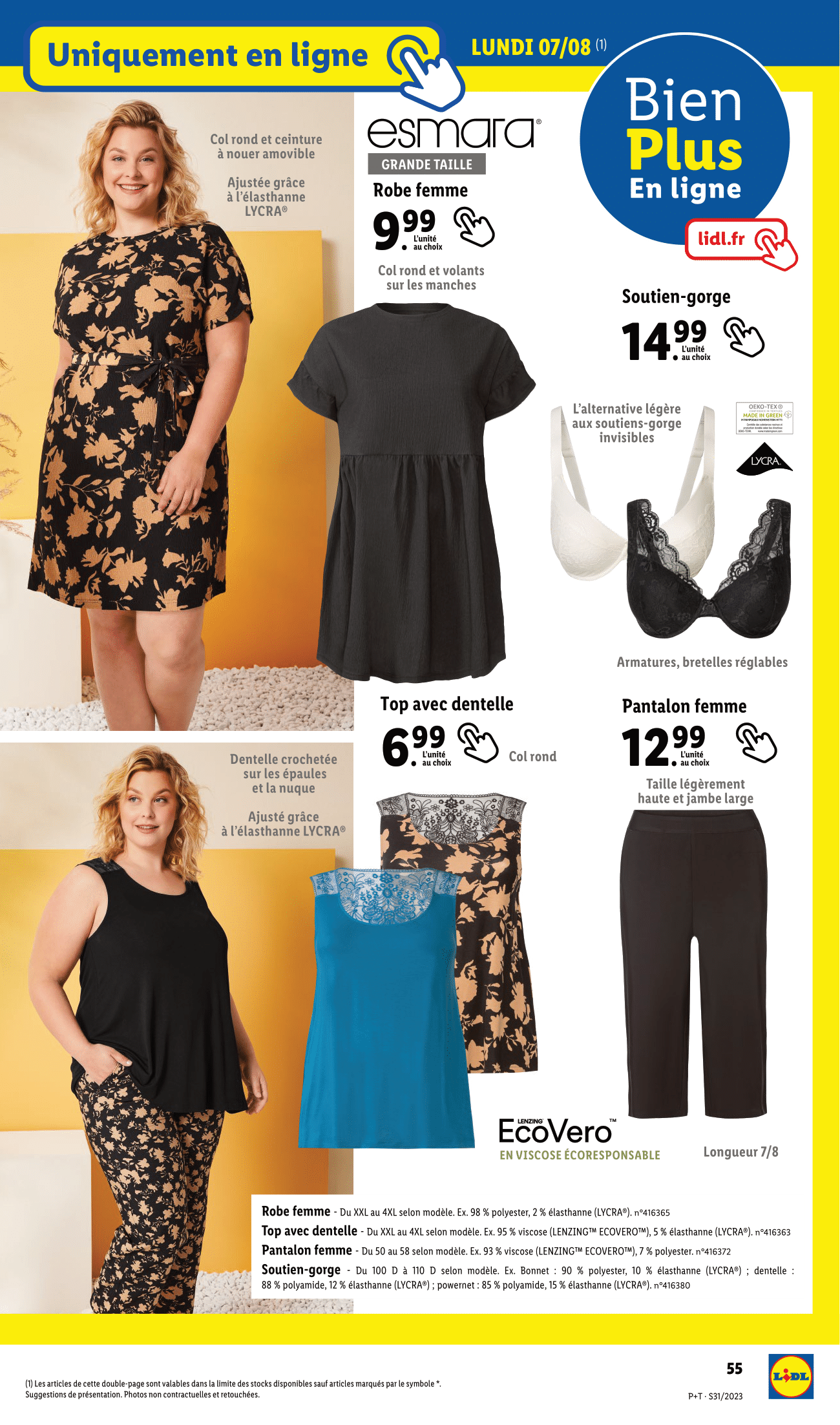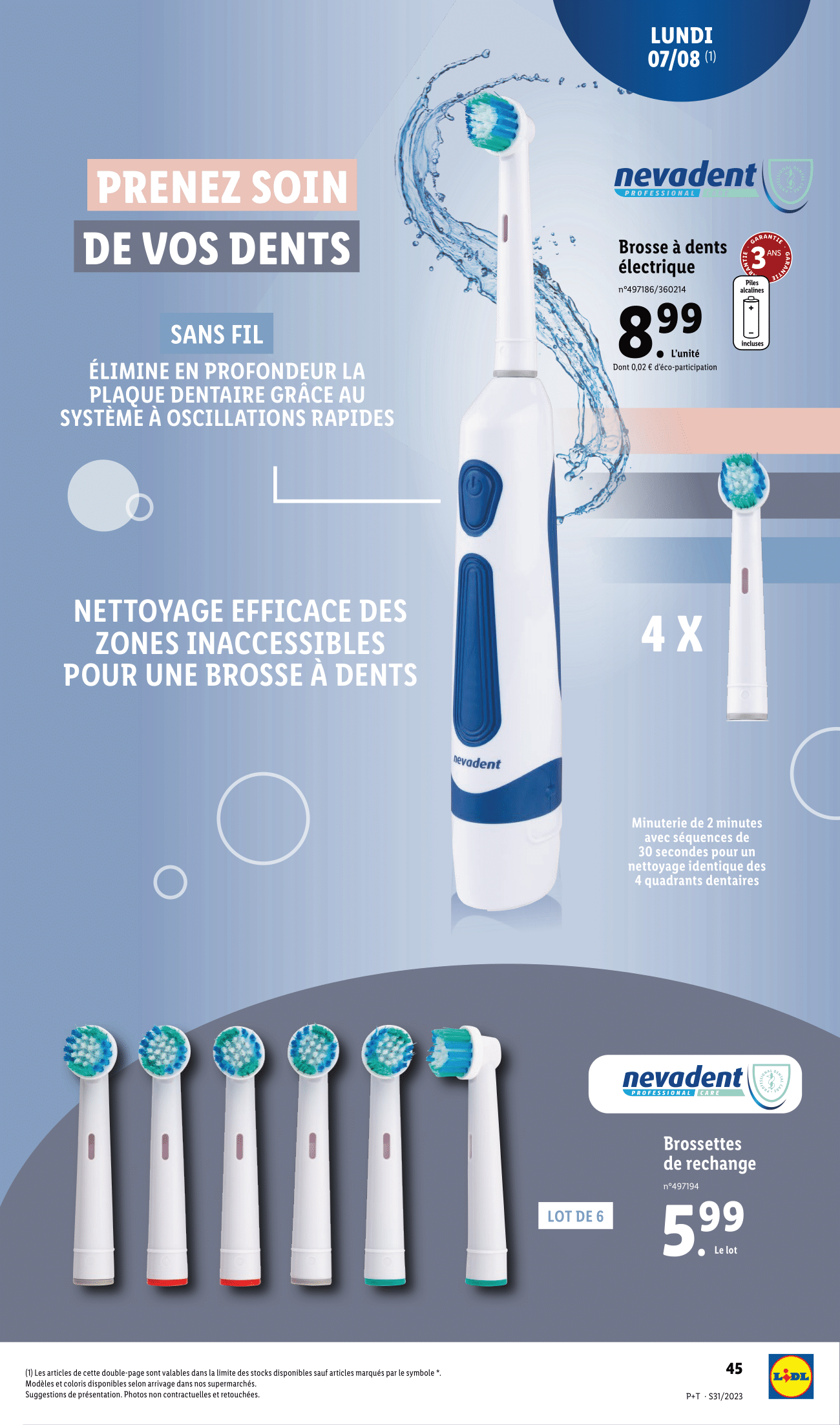 Salut la compagnie, Nouvelle semaine, nouveau catalogue Lidl avec des arrivages à retrouver du mercredi 2 au mardi 8 août 2023. Au programme de ce catalogue, on retrouvera un gros arrivage Parkside côté bricolage et jardinage, la gamme SilverCrest rayon salle de bain et cuisine, mais également des vêtements grandes tailles ! Mais pour l’heure, on commence avec l’habituelle sélection de plantes et de fleurs Lidl à retrouver dès le mercredi 2 août 2023. Et comme vous le voyez il y a quelques promotions intéressantes. On retrouvera donc les Orchidée royale en pot céramique, miniplante verte en pot vintage, plante verte en pot céramique, miniplante fleurie, orchidée Dendrobium en pot céramique et Eustoma en coupe. Et cette sélection fleurie continuera le lundi 7 août avec la plante verte Pot en céramique ton bois qui sera également en promo (-25% sur la deuxième plante achetée) et les Platycodon. Allez un peu de jardinage maintenant, c’est ce qui nous attend chez Lidl le jeudi 3 août avec le retour de l’outil modulable à essence 4 en 1 Parkside qui sera en promotion pour l’occasion à -40 euros soit 139 euros au lieu de 179. Un outil 4 en 1 donc : coupe-bordures, élagueuse, taille-haies et débroussailleuse Idéal notamment pour couper des branches et des haies en toute sécurité en restant au sol jusqu’à environ 3,5 mètre. Toujours pour le jardin, Lidl nous proposera son coffre de rangement d’environ 280 l, pour ranger votre matos de jardinage et autres équipements d’extérieur. Et coté luminaire d’extérieur, on retrouvera en rayon le projecteur solaire à led ainsi que les lampe solaire à LED, avec au choix modèle avec changement de couleur automatique et fluide ou modèle avec lumière blanc chaud. On poursuit ces arrivages avec encore et toujours du Parkside, vous allez voir c’est loin d’être fini. On retrouvera donc également le tour Parkside à -25 euros soit 84 euros au lieu de 109. Idéal pour l’usinage de pièces en bois avec réglage électronique continu de la vitesse de rotation. Contre-poupée avec blocage rapide et pointe de broche accompagnante, porte-outil réglable et 2 ciseaux à bois (courbe et droit) inclus. On poursuit avec une autre promotion, cette fois-ci sur le décapeur / désherbeur thermique à manche long, lequel sera à -20% soit 20 euros au lieu de 25. Utilisable comme décapeur pour décoller, façonner, chauffer et comme allume barbecue. Sinon on retrouvera également en rayon, le set d’embouts et de douilles (set de 40), des outils de précision, en l’occurrence ici le set de cutters de précision (set de 10), le set de mèches à bois et enfin le set de forets HSS. On continue ces arrivages Parkside avec le set de tournevis et d’embouts (116 pièces), les serre-joints à une main avec serrage ajustable, au choix set de 2 ou set de 4, le lot de 4 manilles et les lots de 4 ou 12 mousquetons. Lidl nous ressort également sa multiprise en aluminium qui protège vos appareils électriques en cas de surtension jusqu’à 1 800 v. Sinon, on retrouvera aussi en magasin le micromètre : pour des mesures correctes et précises, le set de 2 de balances à ressort : pour peser des objets lourds ou des valises et le compas à charnière avec pointe à tracer. Bon, ça c’était pour les arrivages Parkside en magasin du jeudi 3 août, mais ce même jour, on sera gâté puisqu’il y aura aussi un arrivage en ligne Parkside en commençant par ces lots de roulettes multifonctions : pour caissons, meubles et appareils Mais surtout le retour du découpeur plasma avec compresseur Parkside performance et son rayon plasma régulier et précis à réglage électronique. Sinon, vous pourrez également retrouver en ligne cette table de soudage Pliable pour un encombrement minimal. Pour ranger les outils et le matériel de travail, Lidl proposera différente sacoche à outils à savoir la bandoulière rembourrée Et compartiment pour documents, bandoulière rembourrée et poche latérale en filet ou bandoulière rembourrée et fermeture zippée. Coupe-tube, pince à cintrer ou outils de sertissage seront également la partie. Enfin, on retrouvera aussi en ligne les assortiment de joints d’étanchéité ou toriques Ce n’est pas terminé pour ces arrivages en ligne, puisque le touret à meuler double avec arbre flexible sera aussi présent sur le site Lidl et vous permettra de meuler, couper, polir et nettoyer. Adapté pour l’acier, les métaux non ferreux, le bois, le plastique et le vernis. On aura aussi les tournevis à cliquet avec set d’embouts, serre-joints à vis et tournevis. Et on termine finalement ces arrivages bricolage en ligne avec le set chariot à outils brick système pro comprenant 8 bacs amovibles de différentes tailles pour le rangement de petites pièces. Le marteau perforateur burineur sera également disponible sur la boutique en ligne Lidl. Pour les travaux de perçage avec ou sans percussion ou de burinage. Et il sera accompagné des forets pour perforateur et forets pour marteau perforateur. De retour en magasin, mais le lundi 7 août cette fois avec un arrivage pour la salle de bain d’abord, où l’on retrouvera le mitigeur de lavabo à levier. Avec fonction éco pour une consommation d’eau économique, régulateur de jet pour un jet d’eau agréable et doux et 2 flexibles de raccordement en acier inoxydable et système de vidage chromé inclus. Prenez soin de vos dents avec la brosse à dents électrique sans fil Nevadent, qui élimine en profondeur la plaque dentaire grâce au système à oscillations rapides. Pour nettoyage efficace des zones inaccessibles pour une brosse à dents normale. Et elle sera logiquement accompagnée de ce lot de 6 brossettes de rechange. Allez on se refait une beauté maintenant avec le miroir grossissant, organiseur de cosmétiques, brosse à cheveux et pinceau de maquillage, au choix : pinceau kabuki de voyage, pinceau à correcteur double, pinc