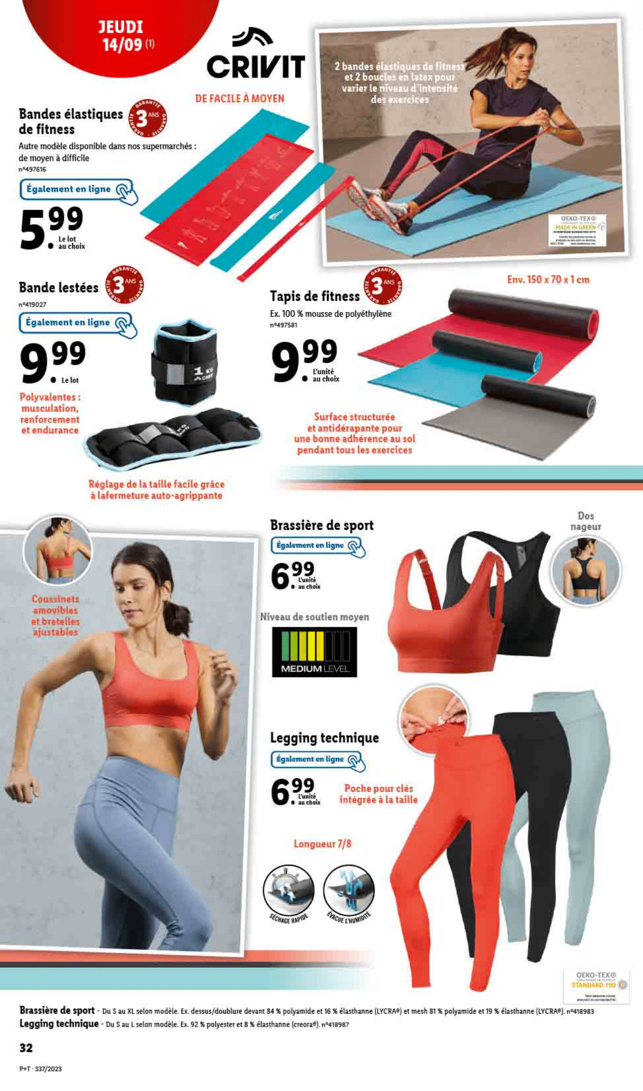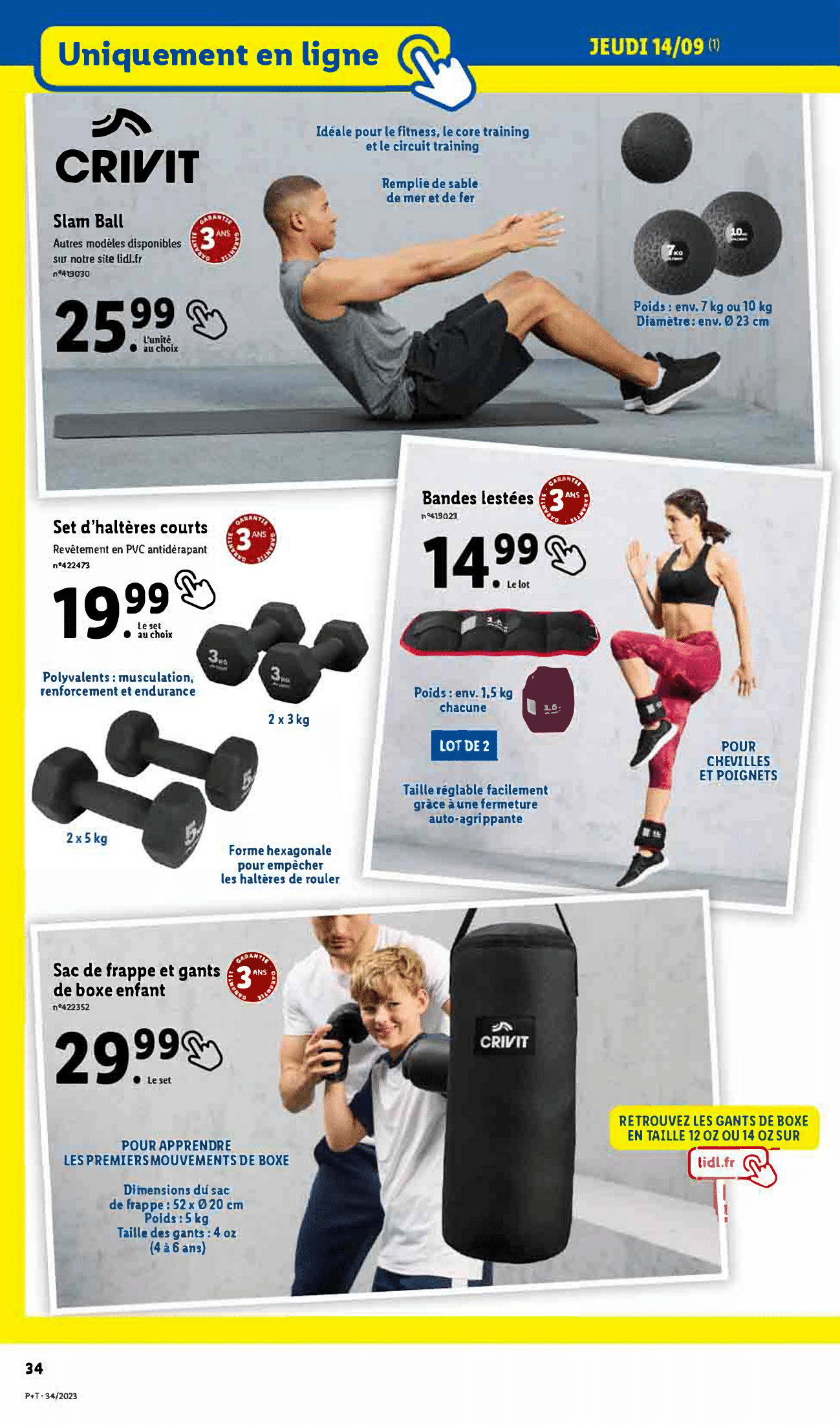 Salut la compagnie, Nouvelle semaine, nouveau catalogue Lidl et aujourd’hui, on s’attaque aux arrivages bricolage parkside du jeudi 14 septembre 2023 toujours en compagnie d’Arnold Schwarzenegger. Allez on ne perd pas de temps et on commence tout de suite par une promotion sur le découpeur plasma Parskide. Il sera à -33% soit 99 euros au lieu de 149. Pour découper la tôle d’acier, l’acier inoxydable, l’aluminium, le cuivre et le fer. Utilisable uniquement avec un compresseur, puisque vous l’avez le voir, c’est la gamme pneumatique Parskide qui sera à l’honneur cette semaine ! Sinon les accessoires pour découpeur plasma et tuyau pneumatique seront également de la partie ce jeudi. On en parlait un peu plus tôt, les compresseurs Parskide seront de retour chez Lidl. D’abord le compresseur 24 l, 1,8 kW avec pression de service réglable jusqu’à environ 10 bar. Coté caractéristique, on est sur un débit d’air aspiré d’environ 260l/min, débit d’air restitué à 7 bar d’environ 103l/min, cordon d’alimentation de 3 m et flexible de 5 mètre inclus. Sinon, il y aura aussi le compresseur silencieux 1,5 kW, réglable en continu d’environ 0 à 10 bar et cuve d’environ 24l avec vis de purge de l’eau condensée. L’avantage, c’est son volume sonore de 68 décibels grâce à une conception antibruit. Coté caractéristique on est sur une capacité d’aspiration de 257l/min, air restitué à 7 bar de 103l/min avec flexible inclus. Après avoir vu les compresseurs, on va donc logiquement passer en revue les outils pneumatique, à commencer par le pistolet à peinture pneumatique. Approximativement 500 ml avec technique basse pression. Et si vous au contraire, vous cherchez à enlever la peinture, le vernis, la rouille ou les tâches tenaces, Lidl nous ressort également son pistolet de sablage pneumatique avec débit de projection réglable et embouts inclus pour travailler les petites et grandes surfaces ainsi que les coins. Enfin, la polisseuse pneumatique sera aussi de retour dans les baques. Idéal pour les travaux de restauration et de polissage. On poursuit ces arrivages avec la clé à choc pneumatique et son mécanisme de percussion à 4 puissances. Boitier en aluminium moulé sous pression avec revêtement peint par poudrage et protection antichocs. Coté accessoires pneumatique, on retrouvera dans un premier temps l’enrouleur de tuyau pneumatique automatique ou encore l’unité de maintenance pneumatique laquelle a 3 fonctions : régulation de la pression, traitement de l’air comprimé et lubrification. Mais ce n’est pas tout coté accessoires, puisqu’il y aura aussi le lubrificateur pour air comprimé, le set de raccords pneumatiques ainsi que le set d’accessoires pour compresseur comprenant un tuyau avec embout pour valve et divers adaptateurs, embout pour valve, pistolet de soufflage avec 2 buses de rallonge, pistolet de gonflage avec valve et manomètre et 7 adaptateurs avec embouts. On passe aux petits outils maintenant, avec la pince à sertir avec accessoires pour couper, dénuder et sertir. Il s’agit d’un set composé d’1 pince à sertir et à dénuder, 60 cosses, 30 cosses clips, 30 connecteurs plats, 20 manchons, 10 manchons étanches aux projections d’eau, 50 embouts, 15 serre-câbles d’env. 10 cm et 15 fils d’env. 13 cm. On retrouvera également le set de 8 tournevis VDE. Enfin, spatule, platoir ou mélangeur ainsi du petit matériel électrique viennent conclure cette page. Pour réaliser un trou fraisé en rivetant des écrous (m5, m6, m8, m10, m12), Lidl nous propose sa pince pour écrous à sertir avec accessoires dans un set de 115 pièces. On continue avec le testeur de tension, de prises ou pointeur satellite. Testeur de prises : pour tester sans risque les prises, les enrouleurs de câble, les câbles d’appareil et les câbles de raccordement Testeur de tension sans contact : pour contrôler sans risque les tensions alternatives des câbles, des prises murales et des boîtiers de fusibles Enfin, la multiprise parasurtenseur protègera vos appareils électriques contre les surtensions jusqu’à 2 000 v. Voilà, c’est tout pour les arrivages bricolage de ce jeudi 14 septembre, mais s’il vous reste encore un peu d’énergie, sachez Lidl proposera également un arrivage sport ce même jour. On retrouvera donc la montre fitness connectée pour enregistrer le nombre de pas, les calories brûlées, le temps d’activité et analyser le sommeil. Pour avoir des abdos en bétons, Lidl nous proposera aussi son appareil de musculation pour abdominaux. Enfin, il y aura aussi des accessoires de fitness tels que les musclets, extenseurs ou poignées d’appui. On continue de transpirer avec les bandes élastiques de fitness, bande lestée et tapis de fitness. On retrouvera aussi en les brassières de sport et legging technique. Et justement si vous comptez vous mettre au sport, alors il vous faudra une tenue adaptée, et justement Lidl s’occupe du relooking. D’abord pour les hommes avec les sweats zippé, pantalon molletonné, basket et socquettes en coton bio. Et rayon femmes, il y aura à peu près la même avec les sweats zippé, pantalon molletonné, sneakers et socquettes en coton bio. Et décidément, on va avoir des courbatures puisque cet arrivage sport continue, mais en ligne cette fois-ci avec les smallball, set d’haltères courts, bandes lestées et sac de frappe et gants de boxe enfants. On termine finalement ce catalogue avec le crop-top et legging technique rafraîchissant, tapis de fitness pliable et baskets pour femmes. Voilà, on fait le tour de ces arrivages Lidl du jeudi 14 septembre 2023.