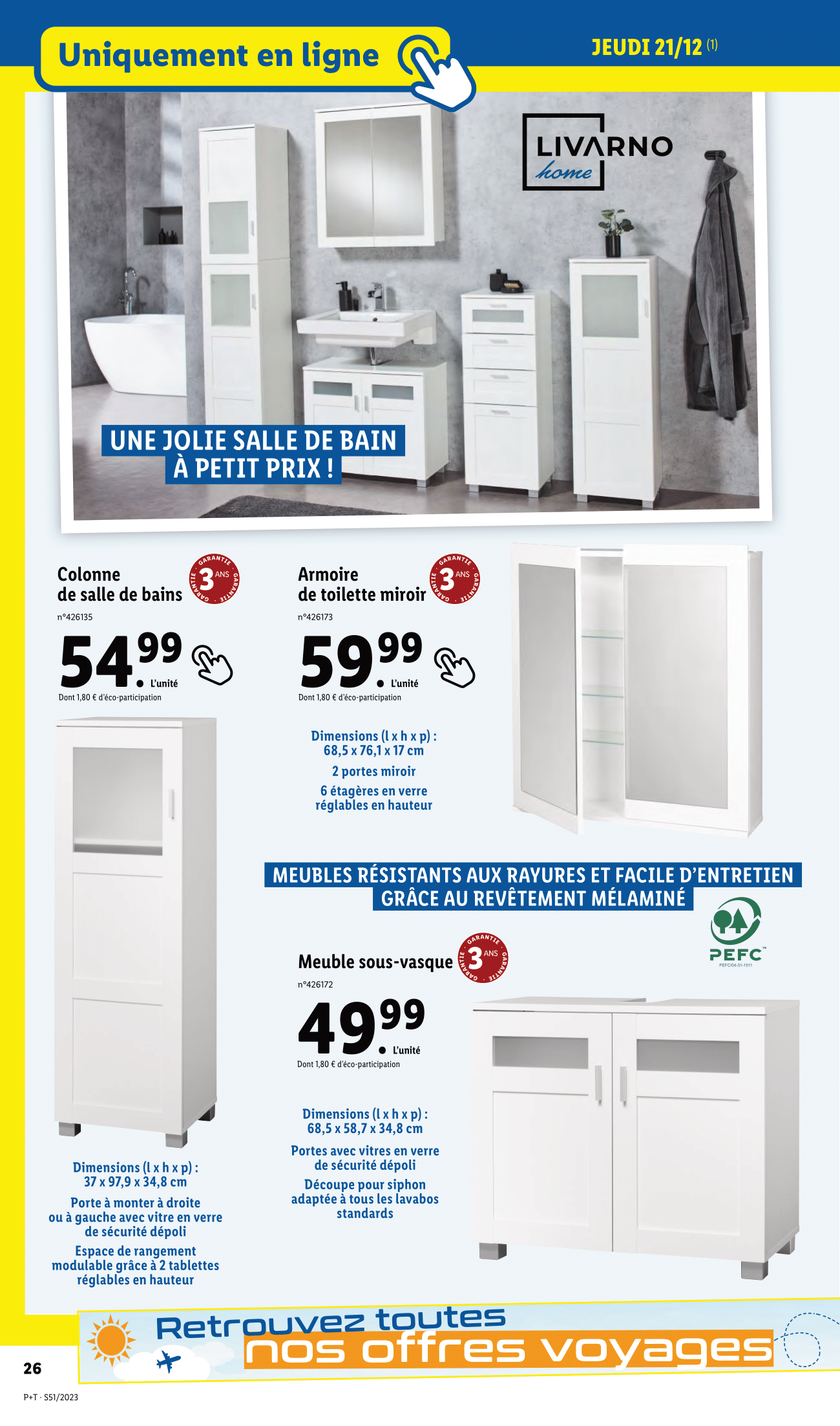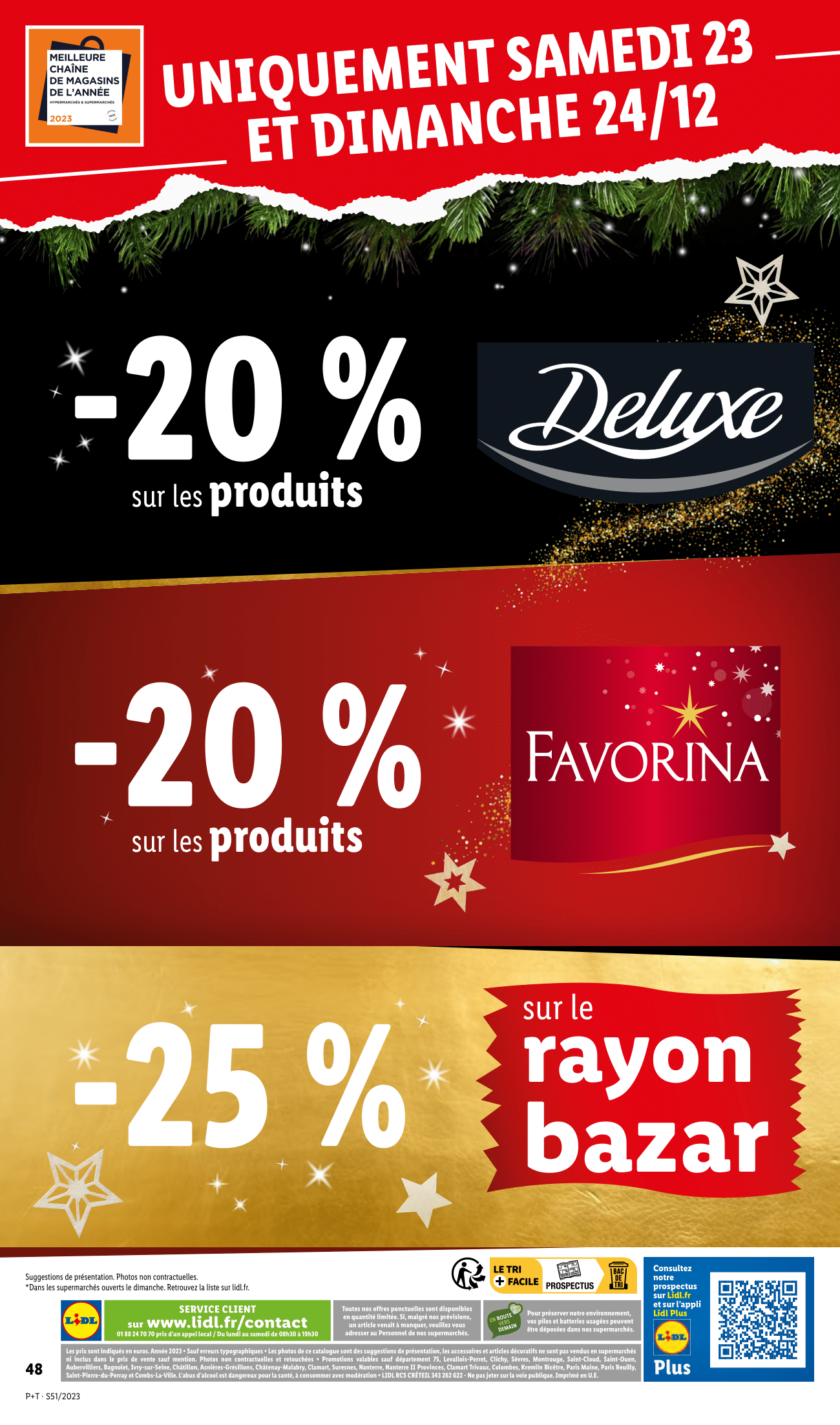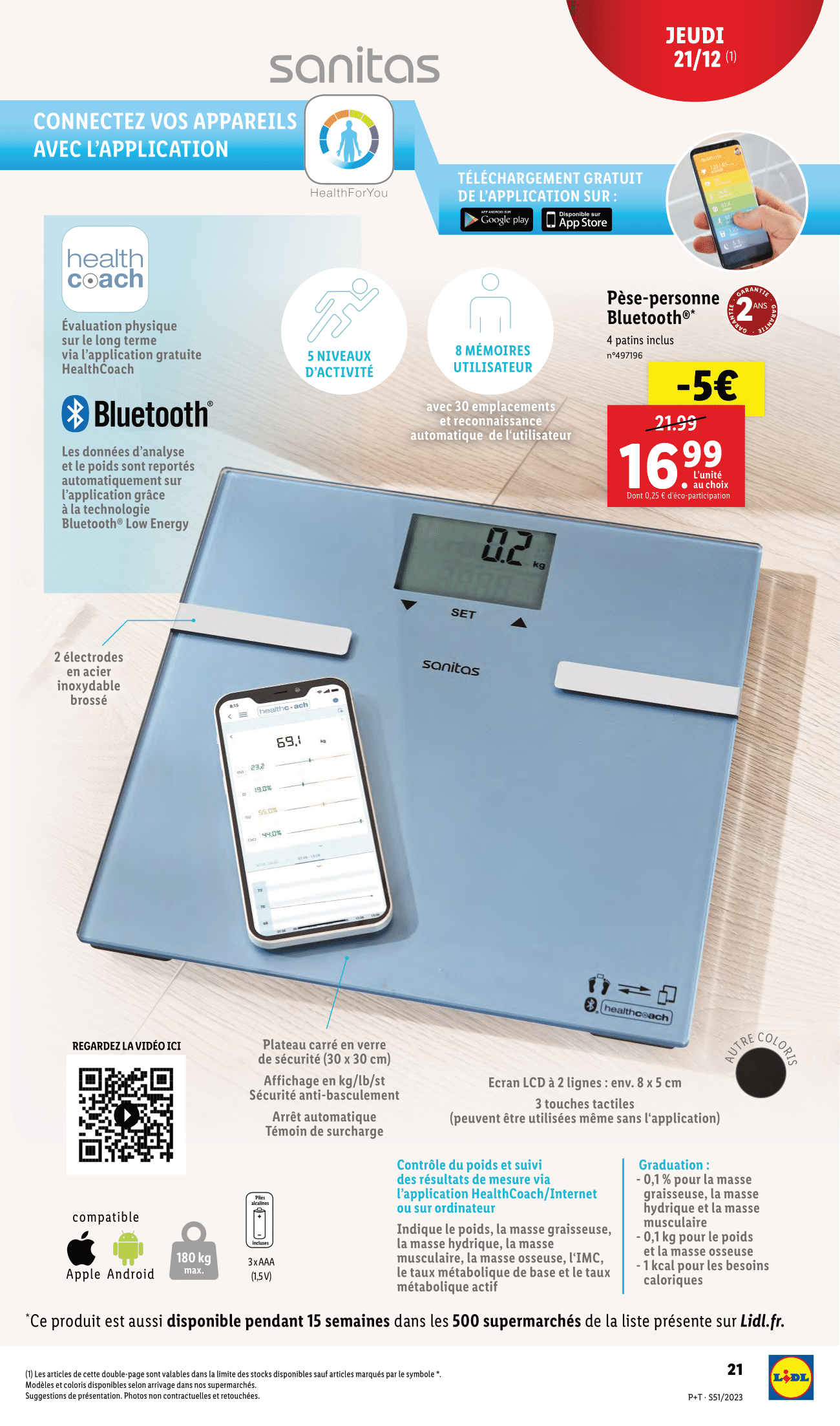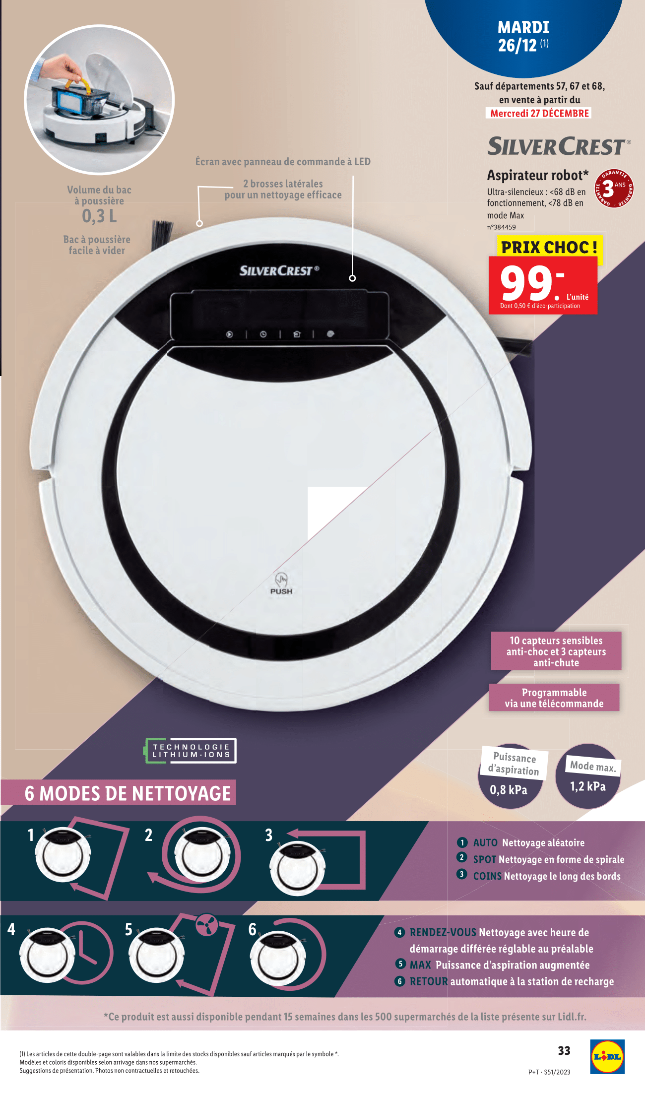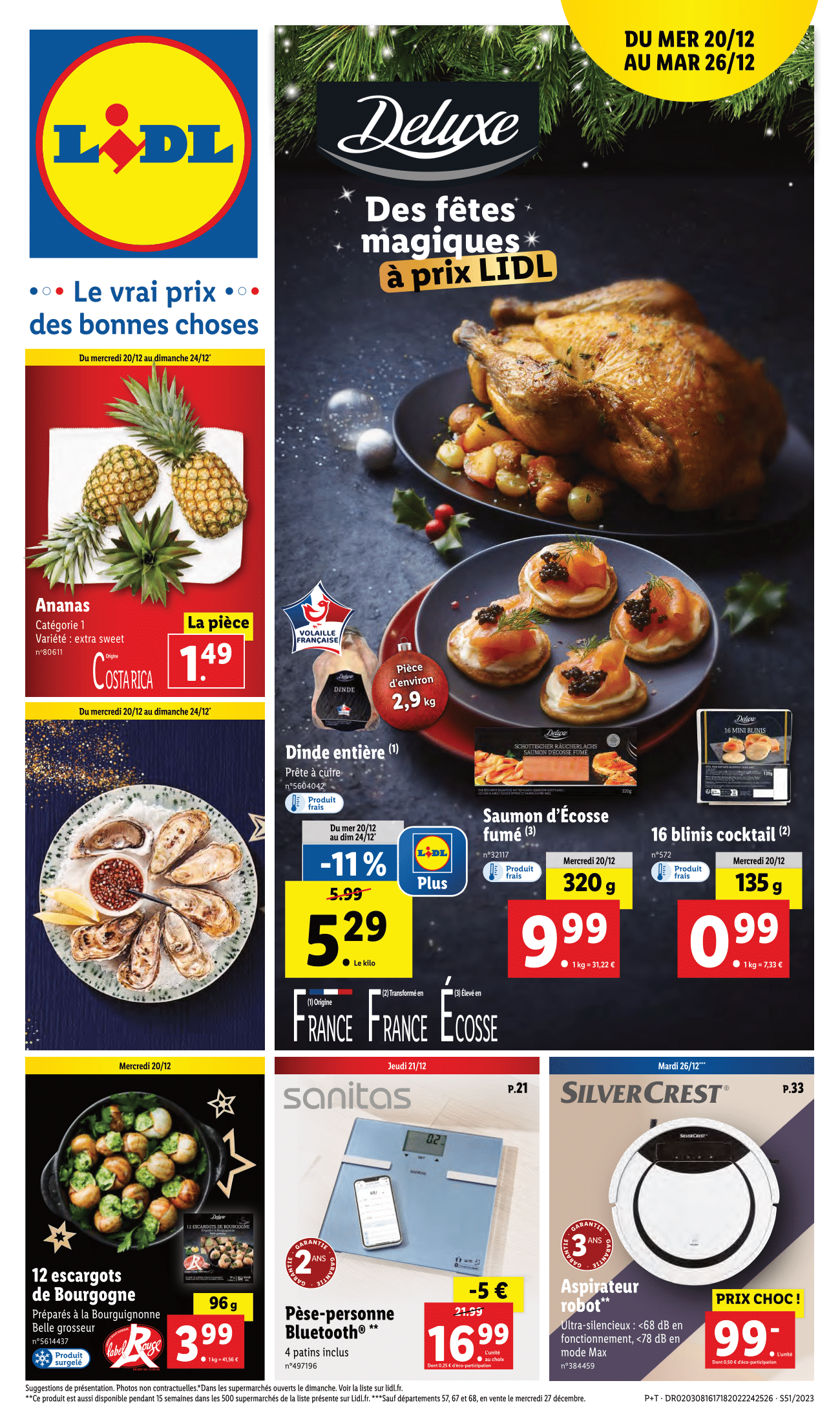 Ça y est, c’est le dernier catalogue LIDL avant Noël et autant vous dire que j’en attendais mieux, mais il y a quelques pépites à découvrir du mercredi 20 au mardi 26 décembre 2023. Je pense notamment à la promotion sur le Pèse-personne Bluetooth ou l’offre choc sur l’Aspirateur robot.