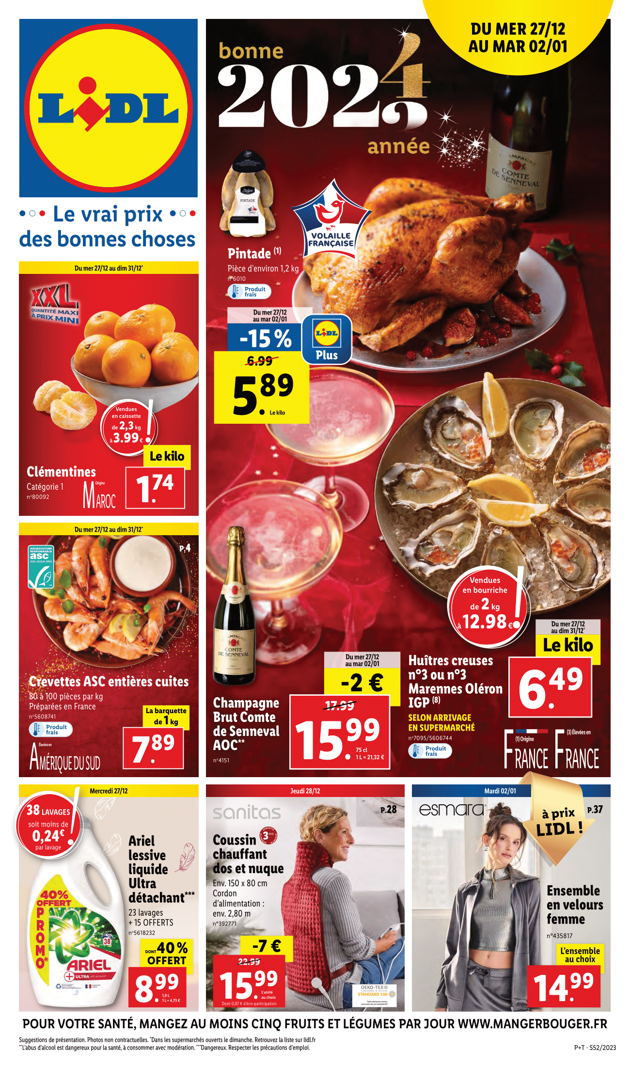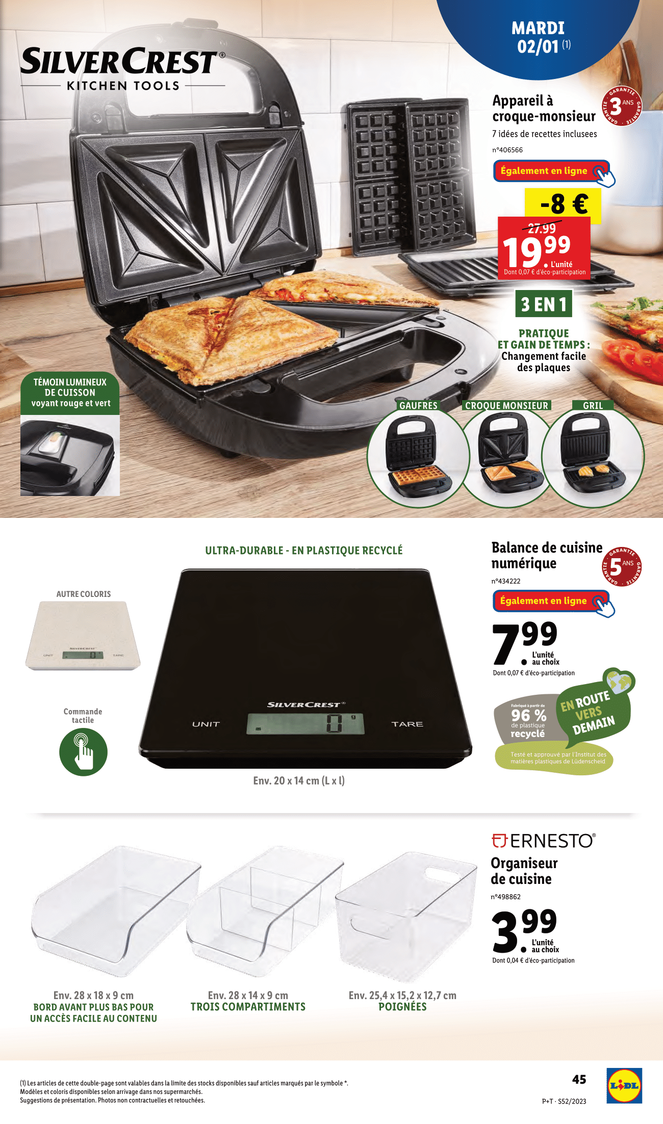 Voici le dernier catalogue LIDL de l’année avec des arrivages à retrouver durant la semaine du mercredi 27 décembre 2023 au mardi 2 janvier 2024.