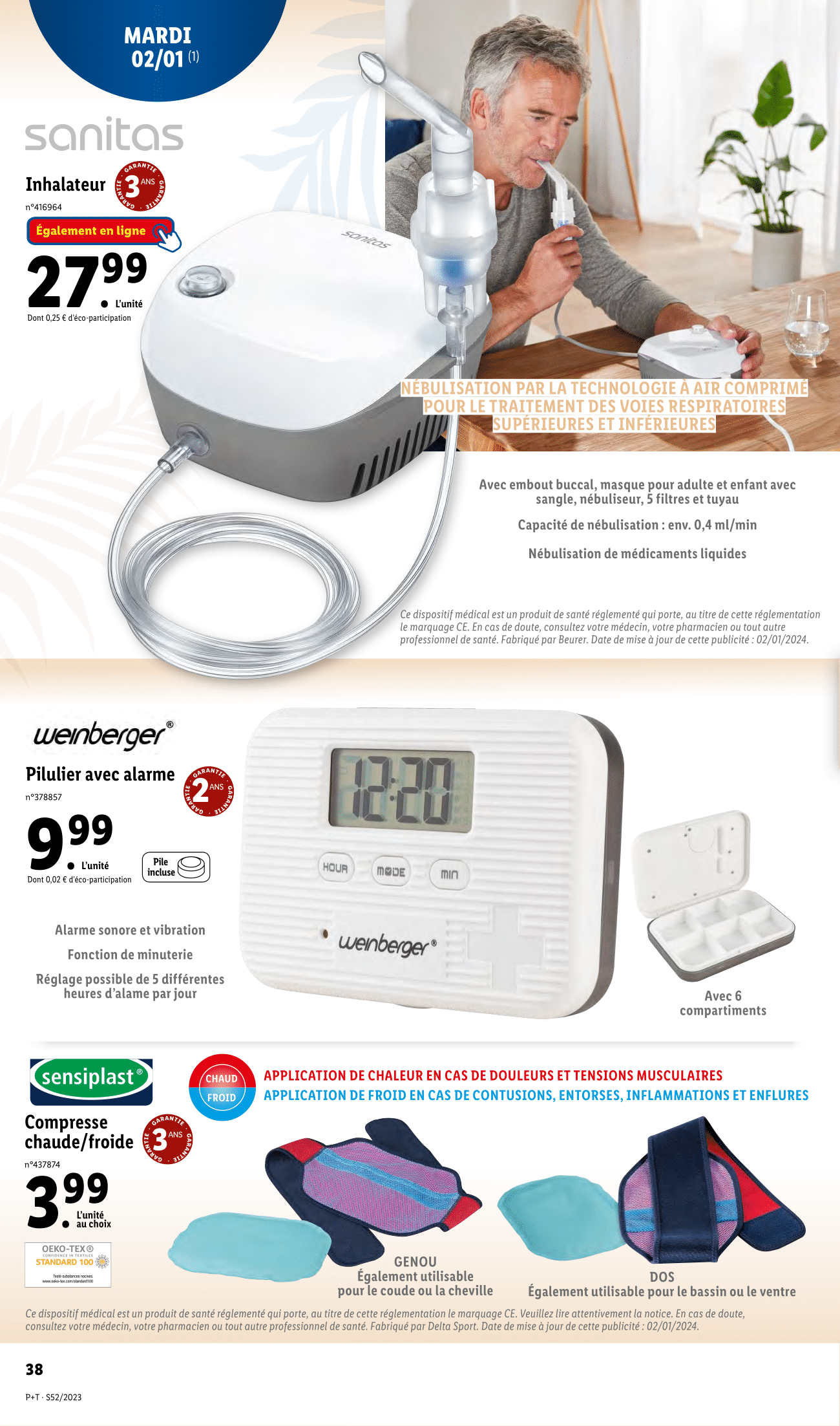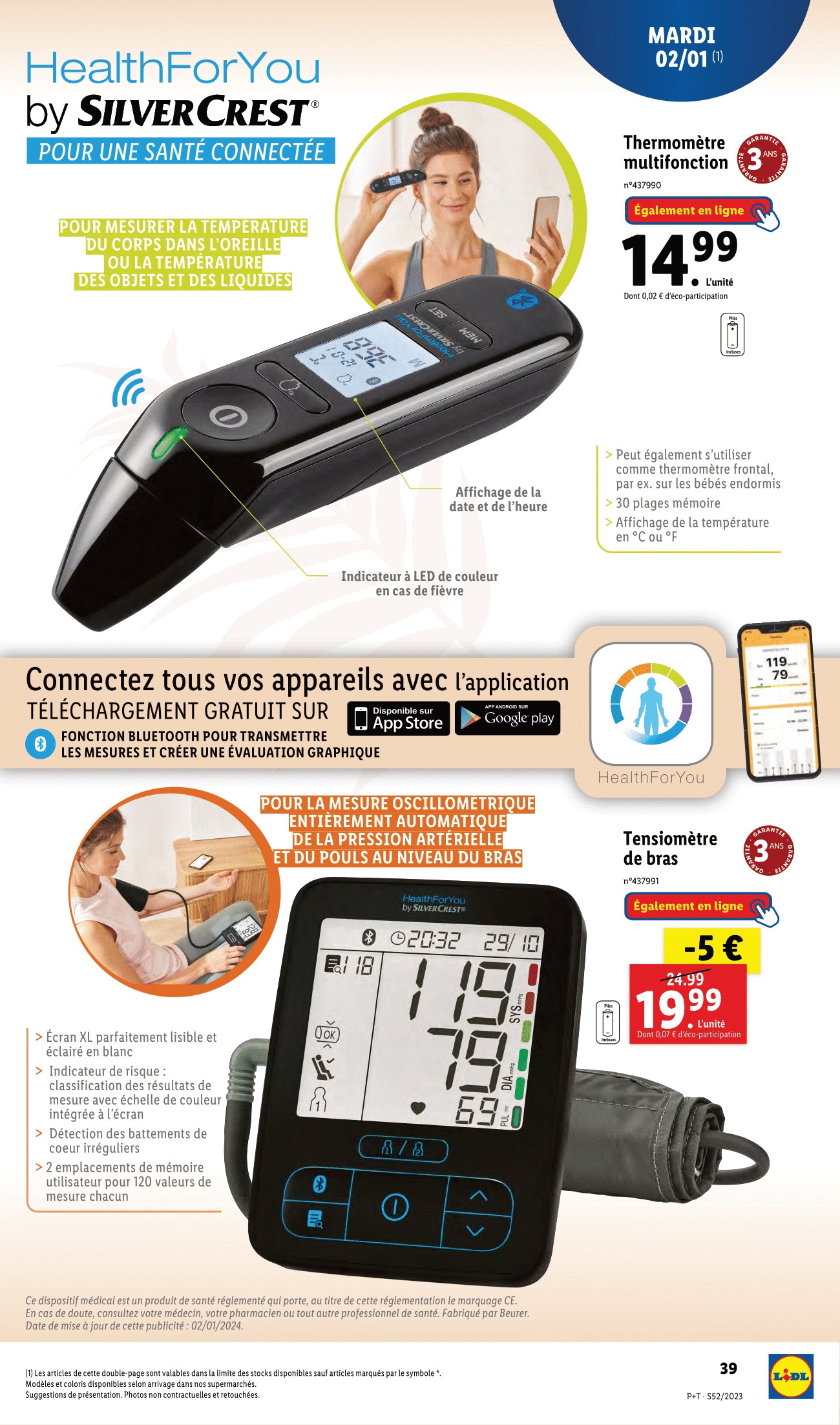 Et pour bien finir l’année et commencée 2024 en beauté, LIDL nous propose quelques promotions à ne pas rater sur ses produits électroménagers SilverCrest. Mais ce n’est pas tout, puisqu’il est coutume de souhaiter de la santé pour la nouvelle année, il y aura également des promos sur les produits Sanitas.