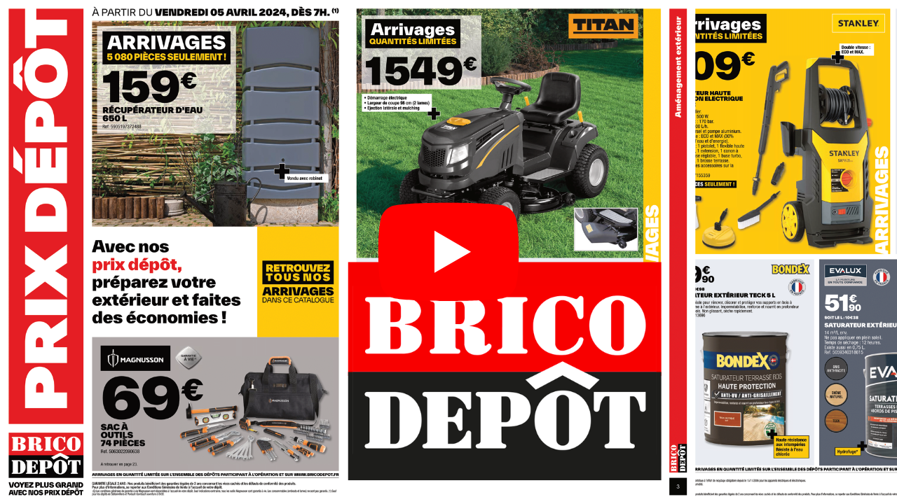 Nouvelle semaine, nouveau catalogue Brico Dépôt avec des arrivages à retrouver du vendredi 5 au jeudi 25 avril 2024.
