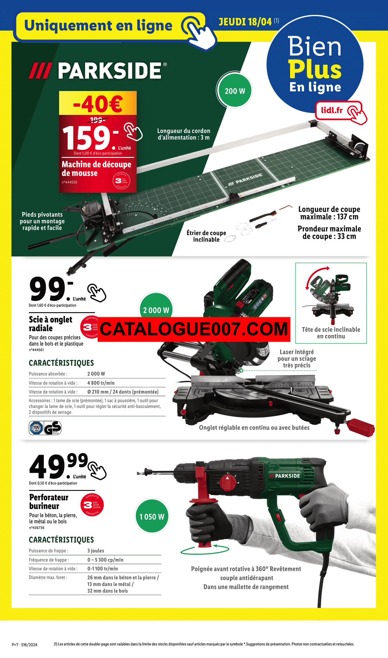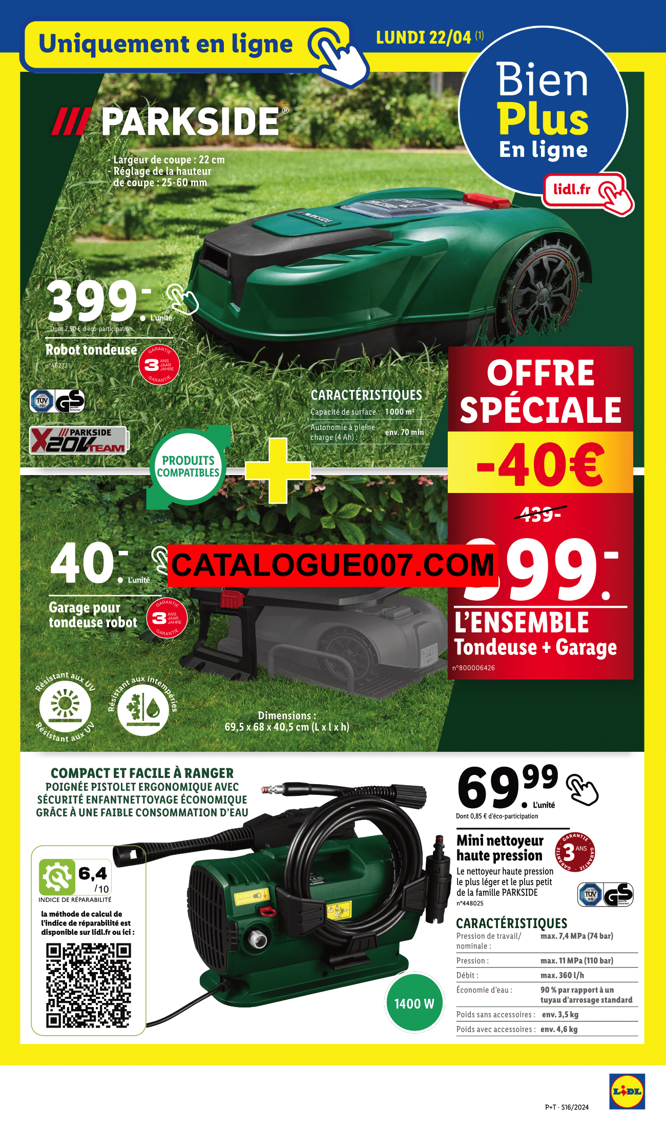 Catalogue Lidl arrivage de la semaine du jeudi 18 avril au lundi 22 avril 2024 avec un arrivage bricolage Parkside en promotion.
