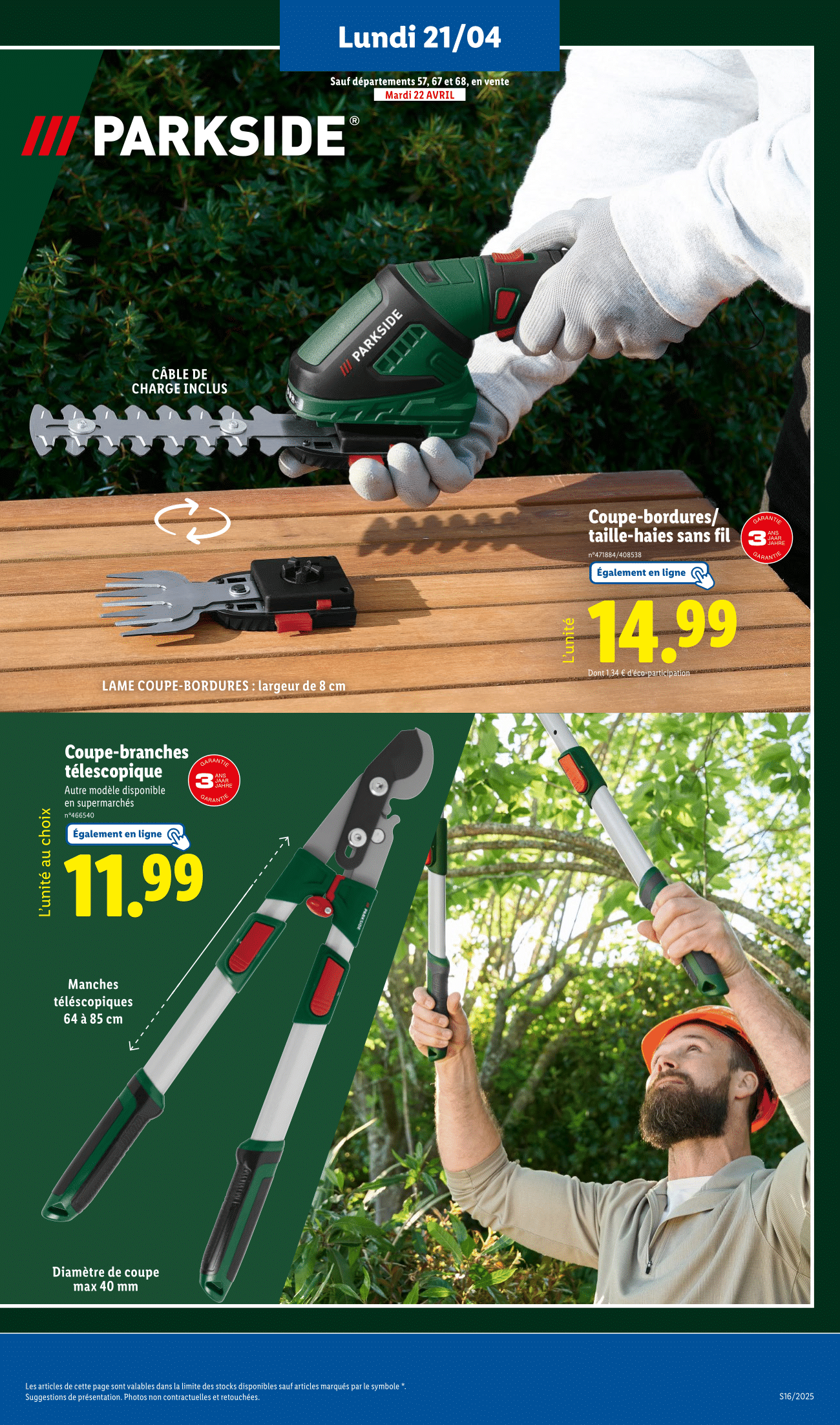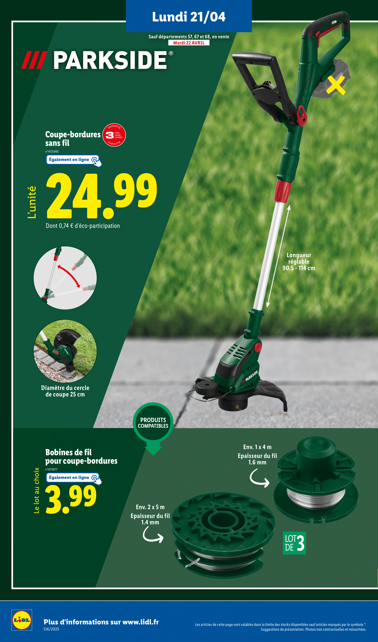 Nouvelle semaine, nouveau catalogue Lidl avec un arrivage très attendu en magasin dès ce lundi 21 avril 2025. Et cette fois, ce sont les bricoleurs et jardiniers qui seront ravis, puisque Lidl propose un gros arrivage Parkside !