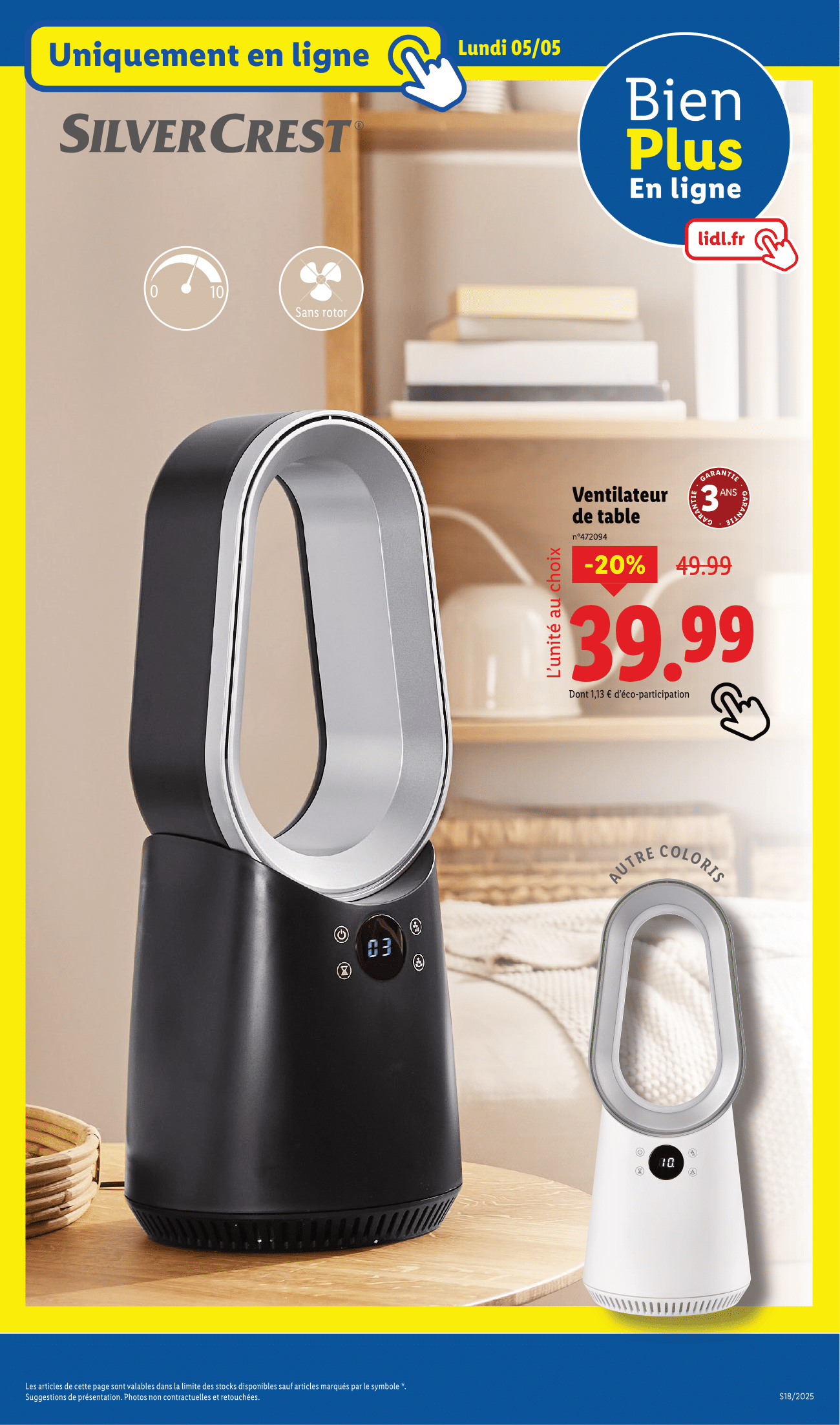 Lidl n’oublie pas sa boutique en ligne, avec des promotions à découvrir tout au long de la semaine : mobilier, électroménager, loisirs… de quoi faire le plein de bonnes affaires depuis chez soi !