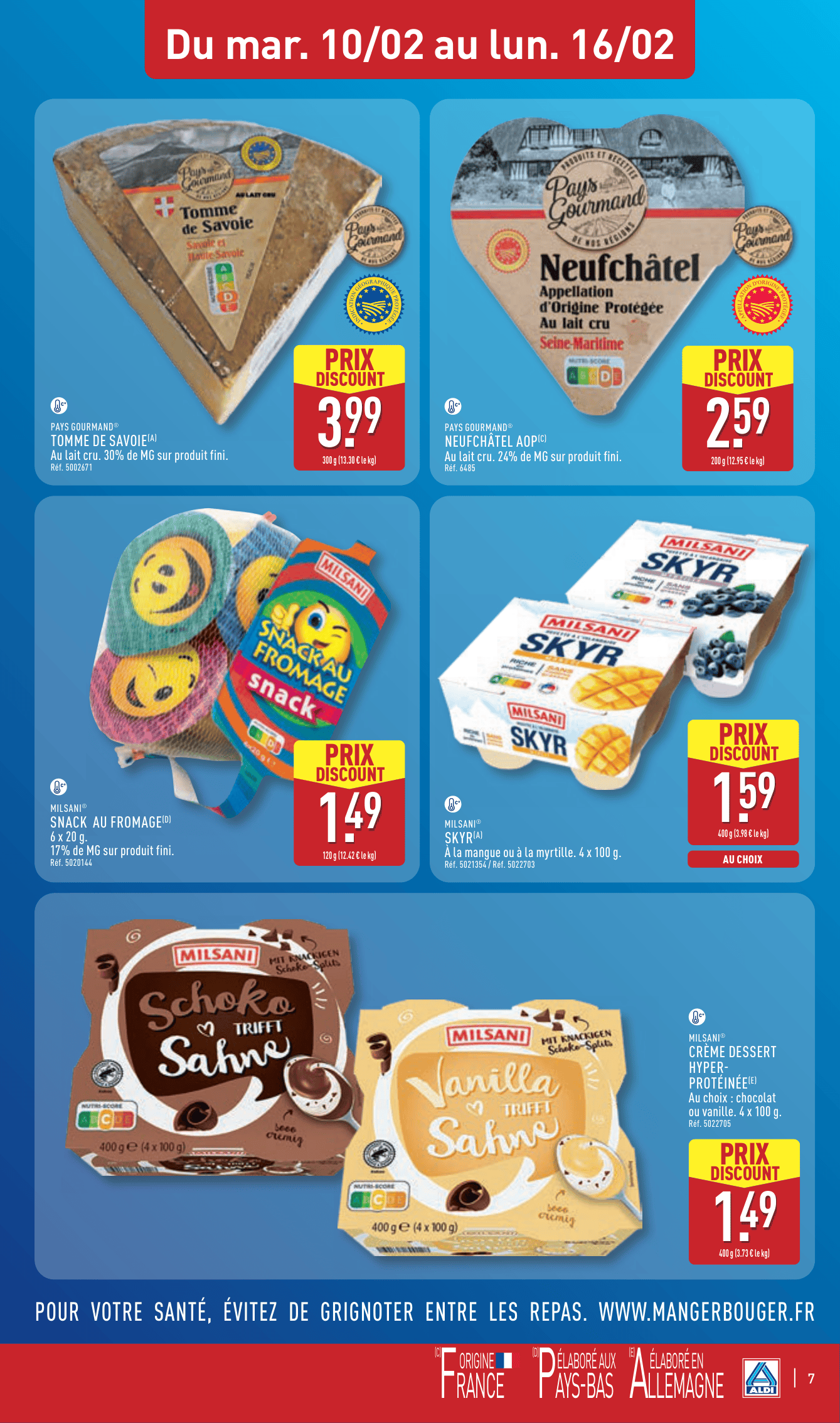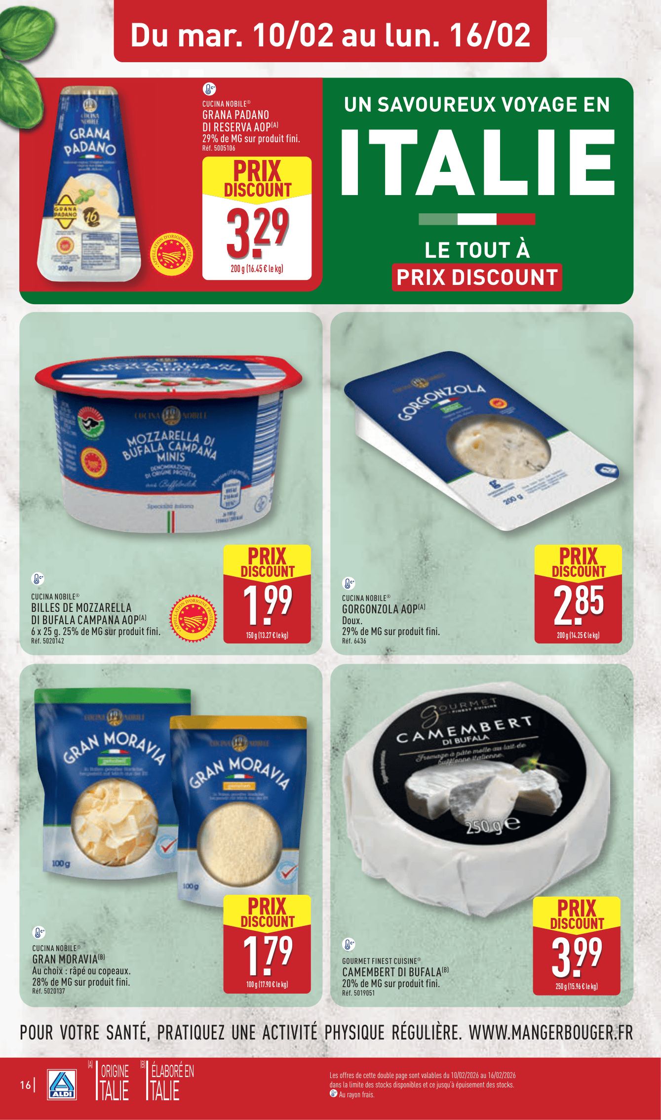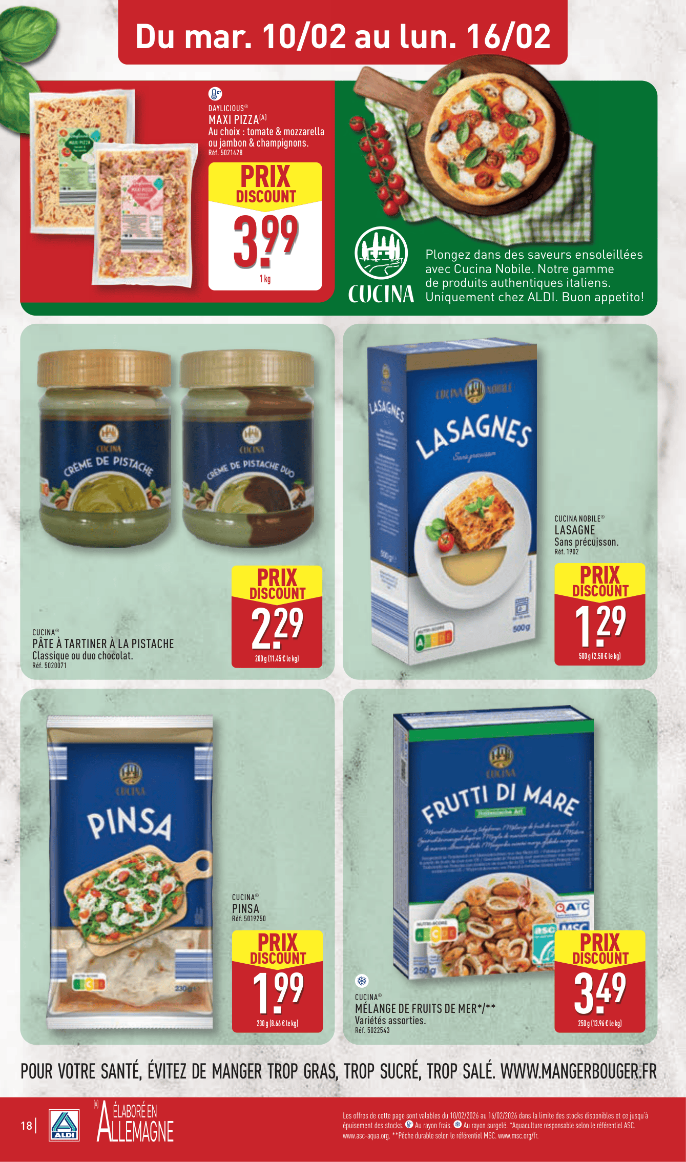 On termine par le frigo ! En plus des promos habituelles, Aldi nous propose un voyage culinaire. On aura le droit à une sélection de produits pour une semaine Italienne (pizzas, pâtes, charcuterie) et une semaine Orientale. De quoi varier les plaisirs sans exploser le budget courses.