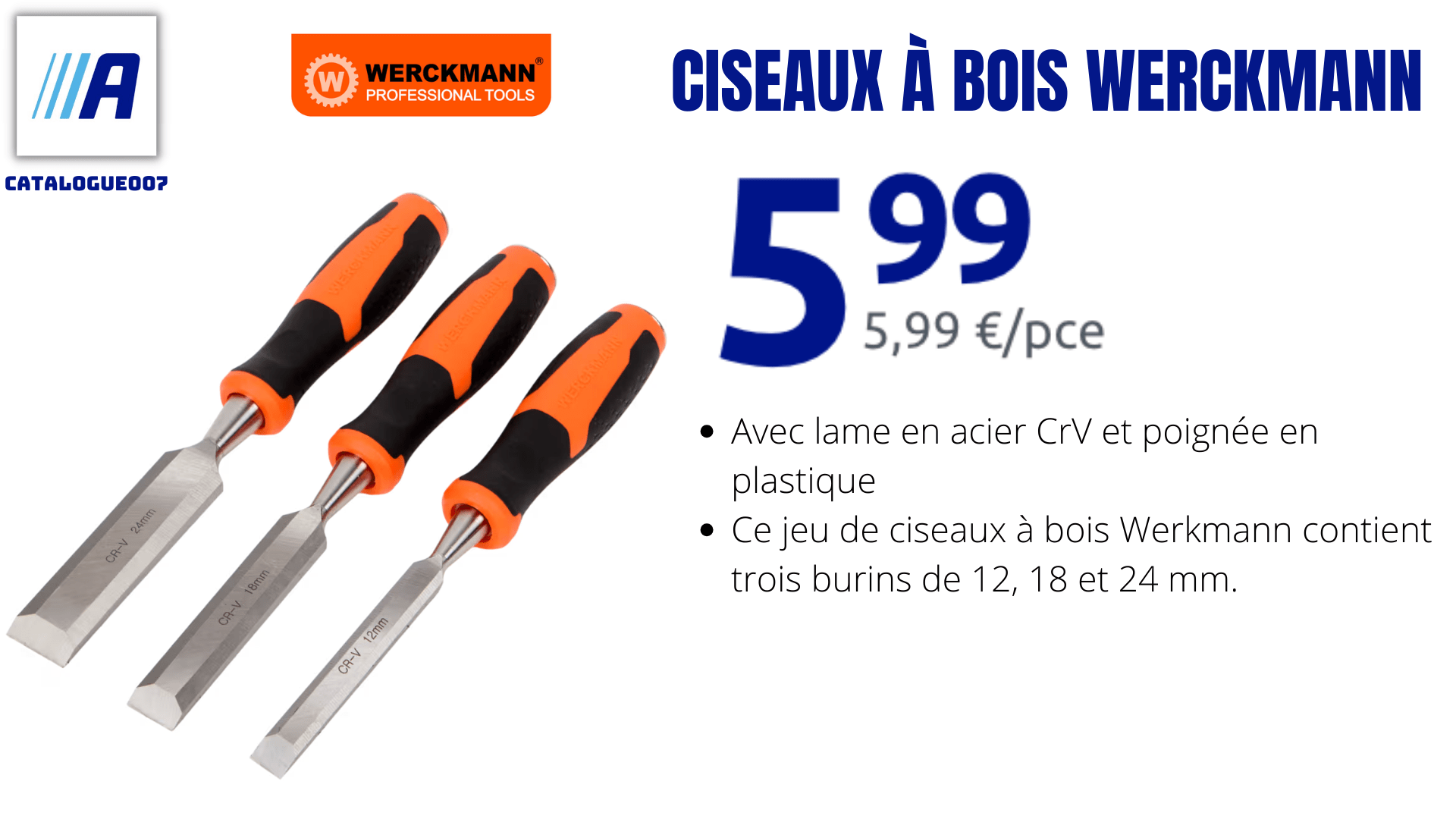 Côté outils à main et accessoires, Werckmann reste la référence du catalogue. Voici ce qu’il faut surveiller en rayon :