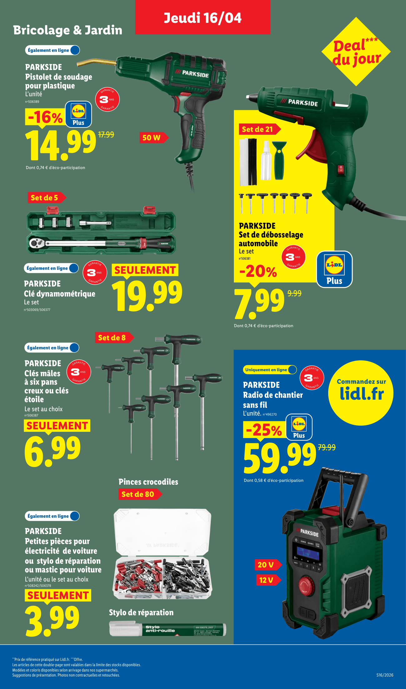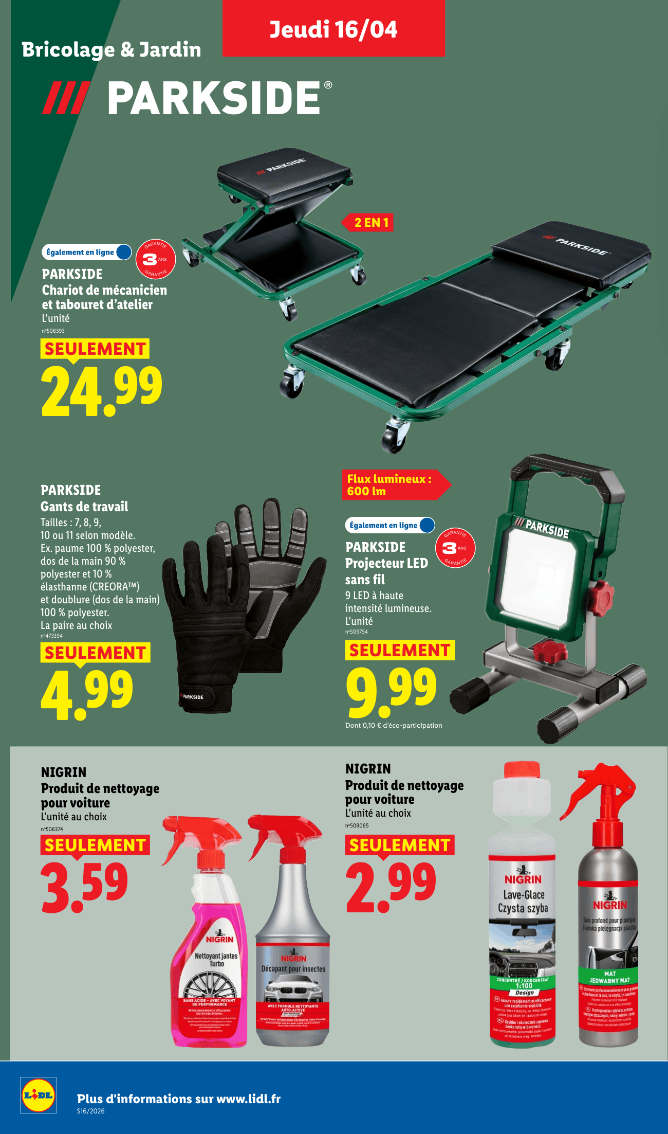 Grosse thématique : Entretien auto (Parkside) et petit électroménager (Silvercrest).