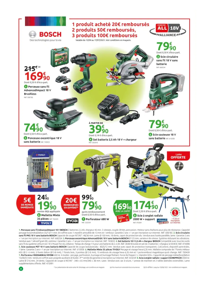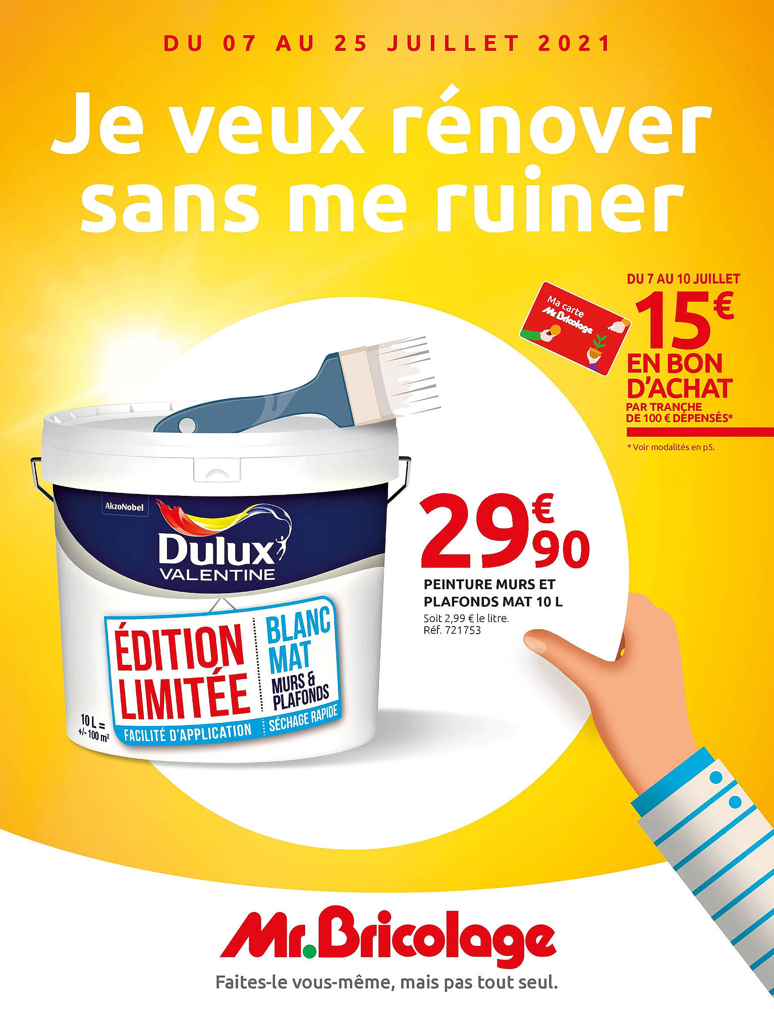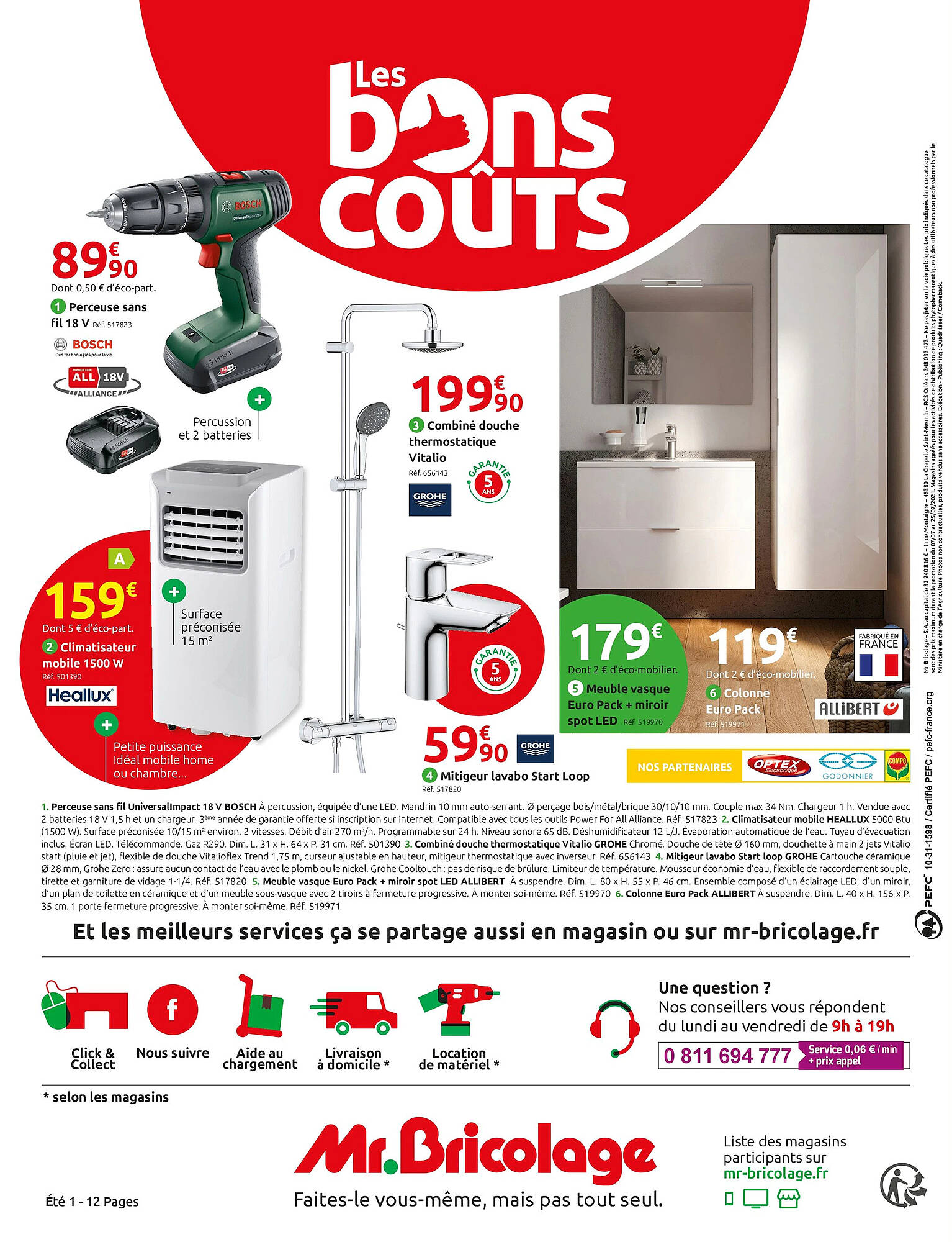 Arrivage Mr Bricolage catalogue disponible jusqu’au 25 juillet 2021 des outils de bricolage : la multiponceuse, la meuleuse d’angle, la perceuse visseuse 18V, les nettoyeurs haute-pression, la ponceuse plâtre, l’aspirateur eau et poussière, du jardinage : la tondeuse thermique, le taille-haie électrique, le coupe-bordure technologie hybride, des climatiseurs, ventilateurs, salon de jardin, rangement pour la maison et de la peinture.